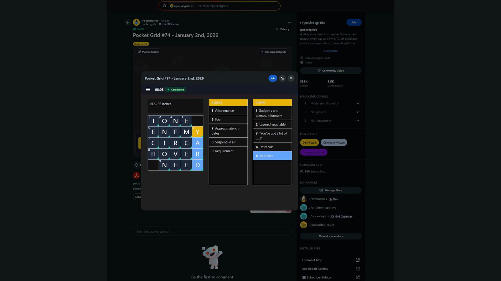 Как поклонник Reddit, я должен порекомендовать ежедневный Pocket Grid Mini Crossword! Это новая мини-кроссворд каждый день, что здорово, но лучшая часть — это создание серии, которой можно поделиться со всеми на Reddit. Серьёзно, это вызывает привыкание — пытаться сохранить эту серию!