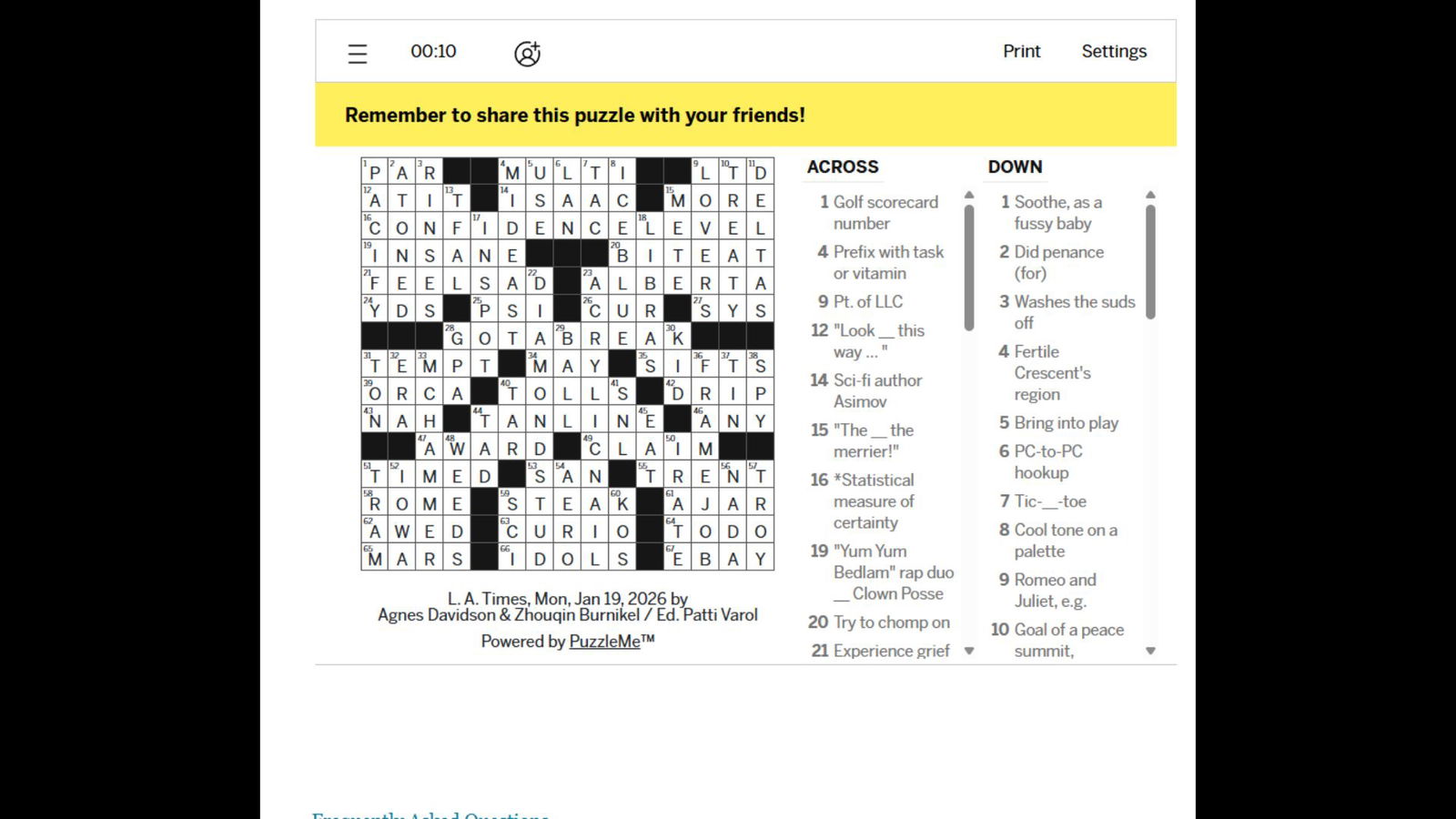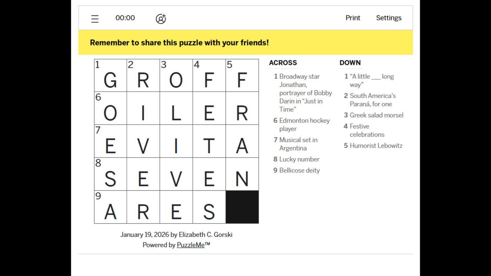 Ответы на мини-кроссворд LA Times от 19 января 2026 года.