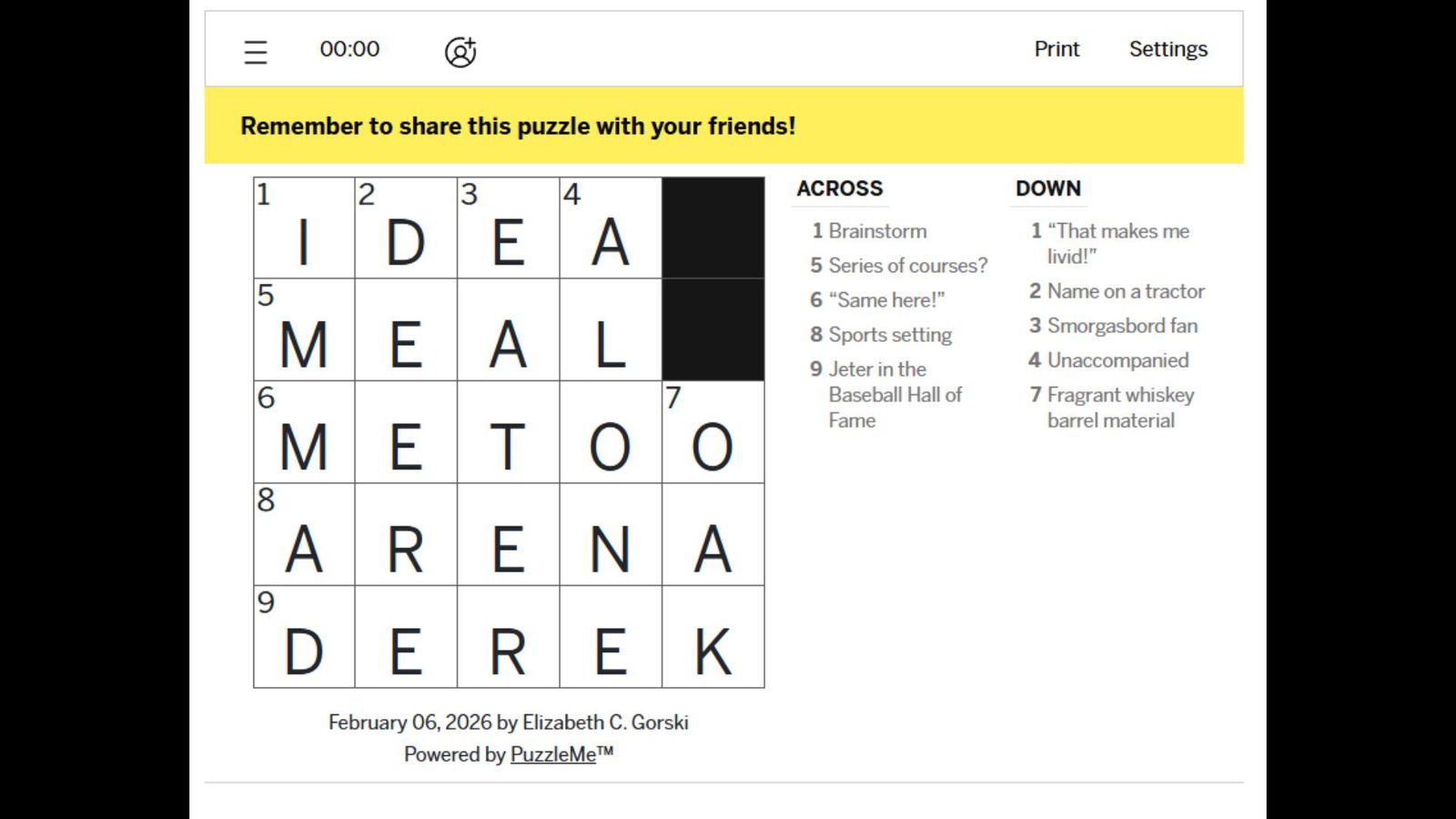 Ответы на LA Times Mini Crossword за 6 февраля 2026 года.