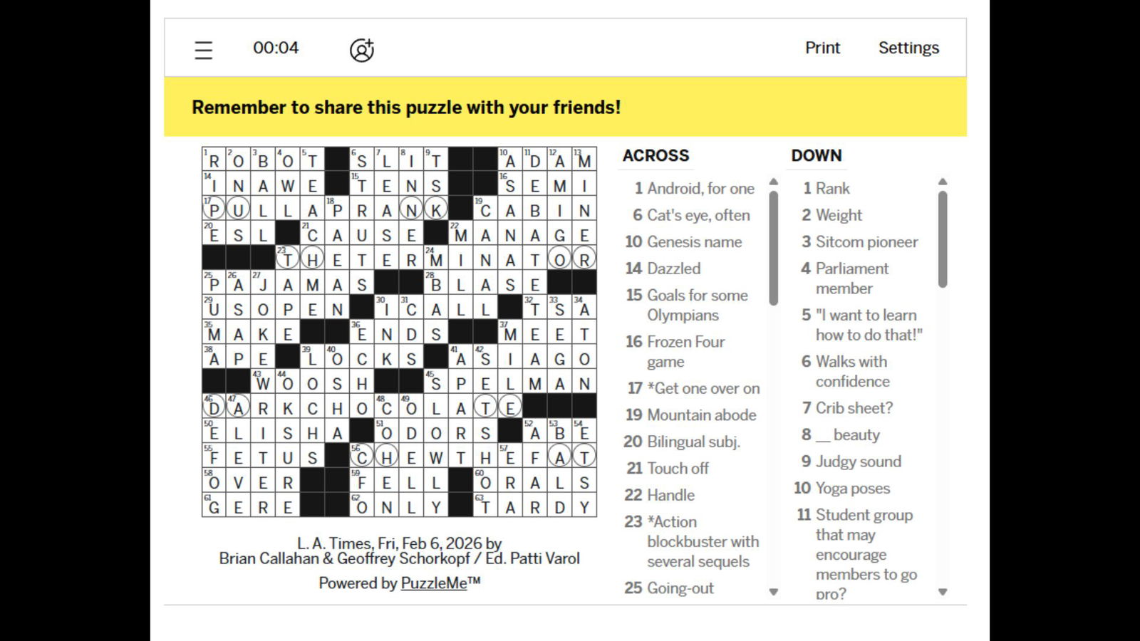 Ответы на кроссворд LA Times за 6 февраля 2026 года.