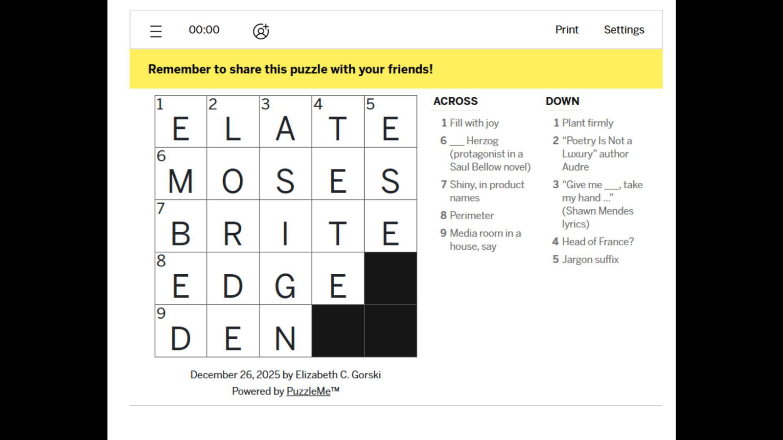 Решения мини-кроссворда LA Times за 26 декабря 2025 года.