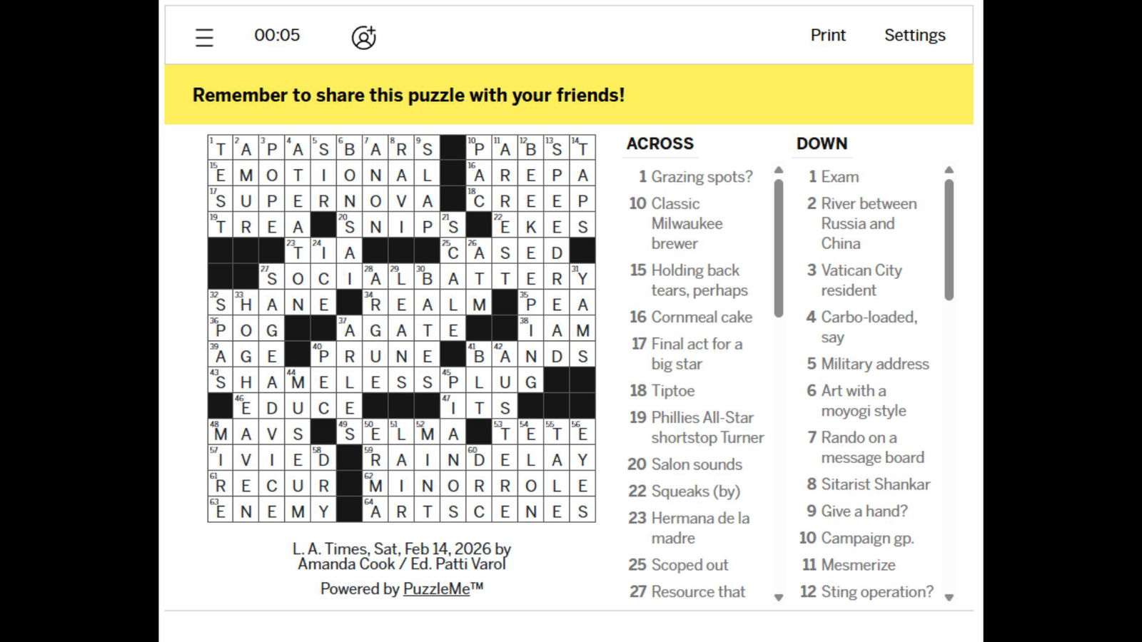 Ответы на кроссворд LA Times за 14 февраля 2026 года.
