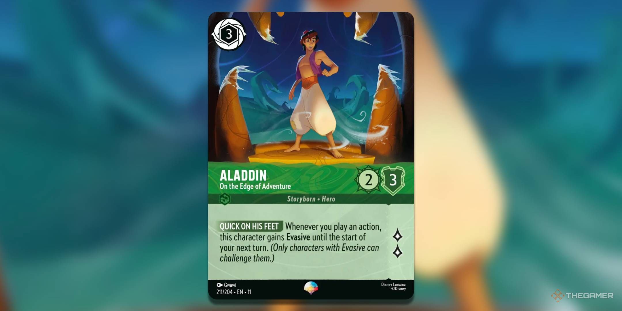 Аладдин не является выдающейся картой в Winterspell, но это достойный выбор. У него хорошие характеристики, и он может уклоняться от атак благодаря своей способности Quick On His Feet, что делает его полезным для быстрого получения двух lore во время квестов, когда они наиболее необходимы.