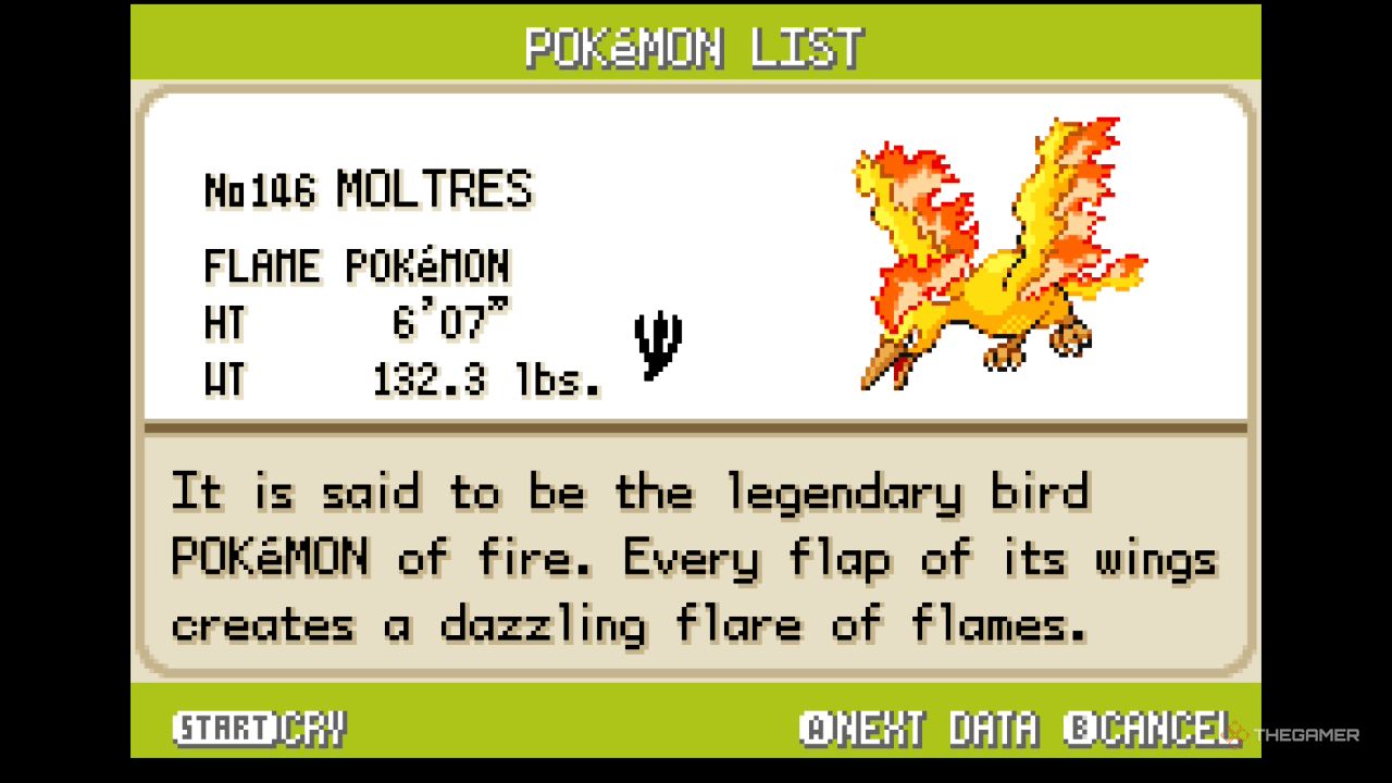 Moltres является самым сильным Pokémon Огненного типа в FireRed, LeafGreen и Ruby, благодаря его превосходной Специальной Атаке и в целом сбалансированным характеристикам. Это лучший выбор, чем Charizard, несмотря на схожие базовые характеристики и одинаковый тип Огонь/Полёт. Как только вы поймаете Moltres на горе Ember, у вас будет мощный Pokémon Огненного типа для вашей команды.