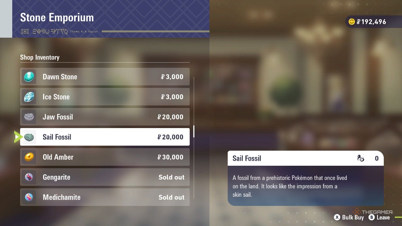 Обязательно обновите экран перед покупкой окаменелости. Игра определяет, является ли она блестящей, основываясь на том, находится ли она в данный момент в вашей сумке.