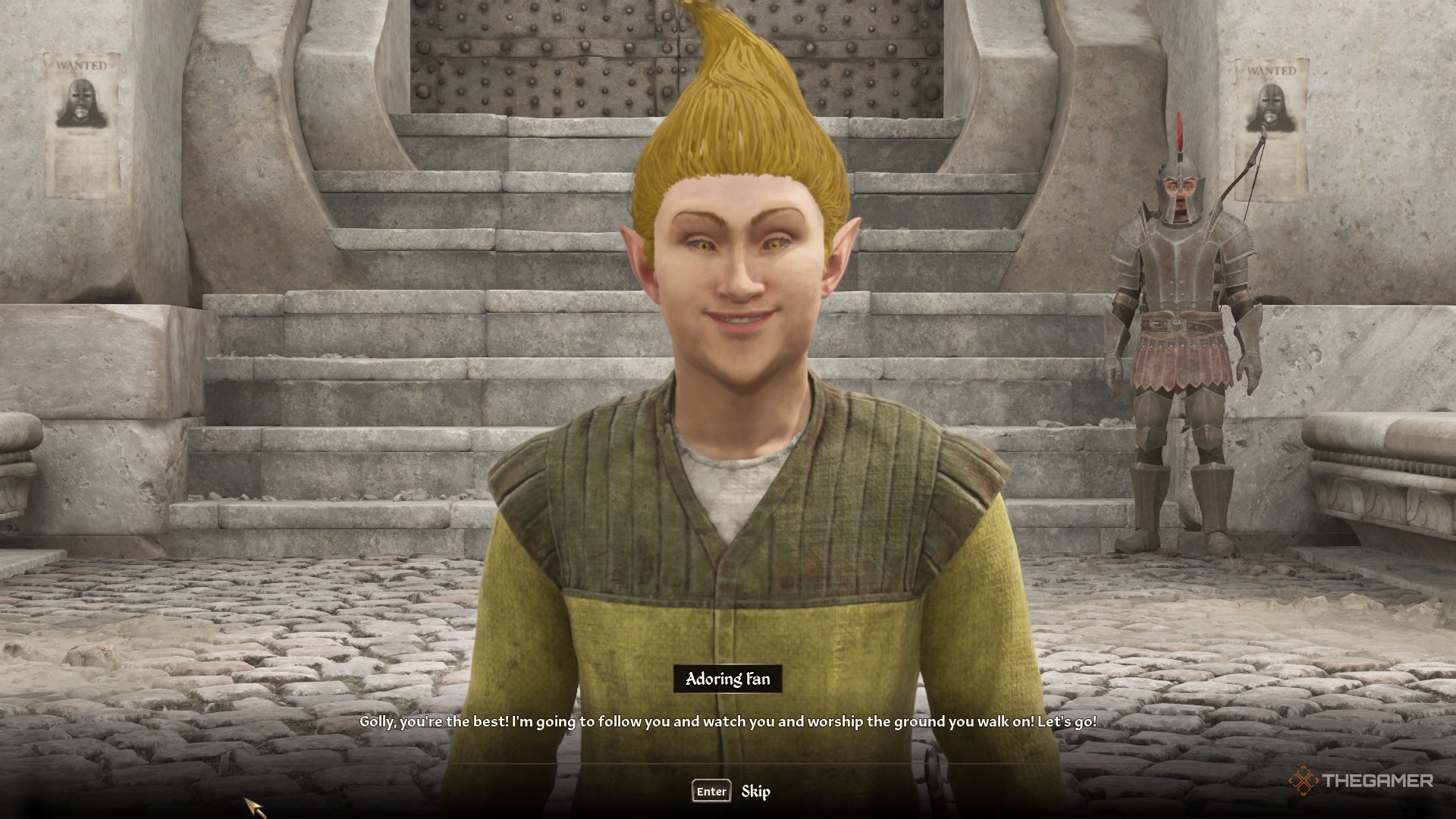 Окей, так стать Гранд Чемпионом на Арене – это ПОТРЯСАЮЩЕ, но самая крутая часть? Этот восхитительный маленький лесной эльф просто появляется! Он совершенно одержим мной, как будто серьёзно поклоняется земле, по которой я хожу. Он просто хочет следовать за мной повсюду и наблюдать за тем, что я делаю, что очень смешно и мило. А самое лучшее? Он бессмертен! Так что у меня появился маленький приятель на всю жизнь, всегда рядом, поддерживающий меня.