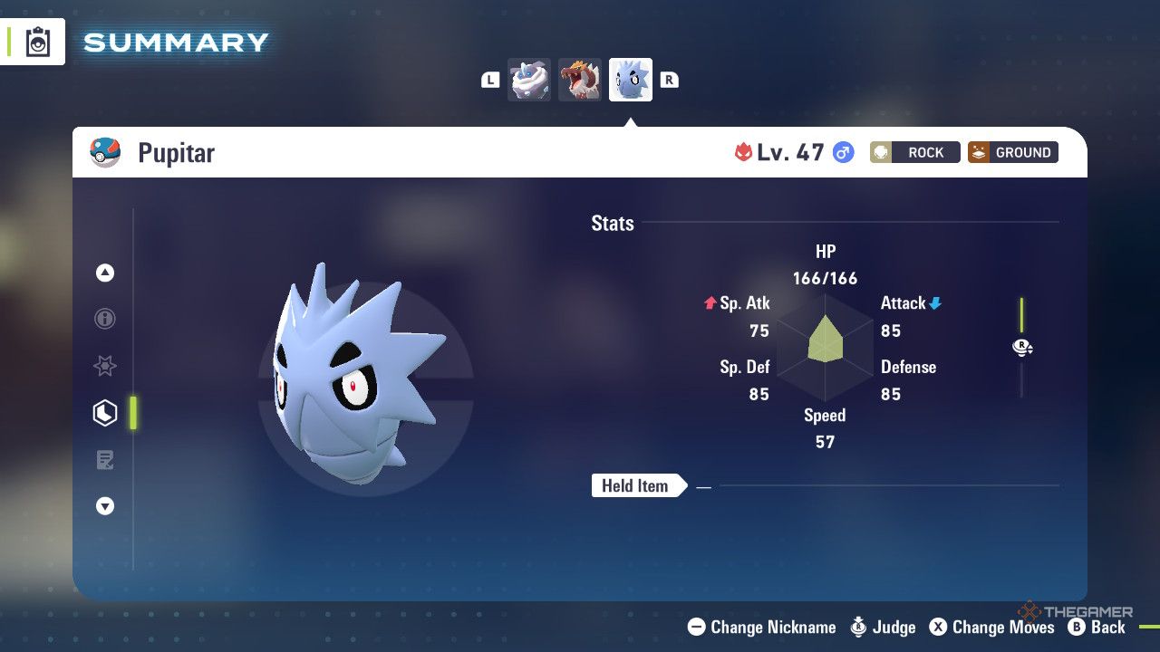 Пупитар выделяется как мощный, но еще не полностью эволюционировавший Покемон Каменного типа. Несмотря на то, что он не достиг своей окончательной формы, его высокий уровень и впечатляющая сила делают его хорошим выбором для нанесения урона в бою, и он становится только лучше по мере эволюции.