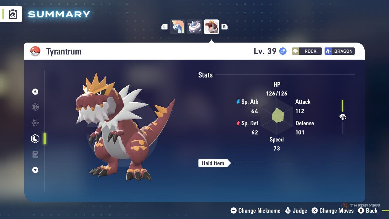 Тиранитэр остается доминирующей силой как сильнейший Покемон каменного типа в Legends: Z-A. Его невероятная сила атаки делает его постоянной угрозой, способной победить противников с одного удара.