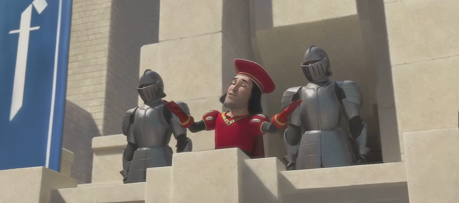 Фильм Shrek был невероятно популярен и породил множество интернет-мемов, особенно благодаря злодею Лорду Фаркуаду. Запоминающаяся сцена показывает, как Фаркуад проводит турнир, ложно представляя опасную задачу спасения принцессы Фионы от дракона как честь и ‘привилегию’ для участников.