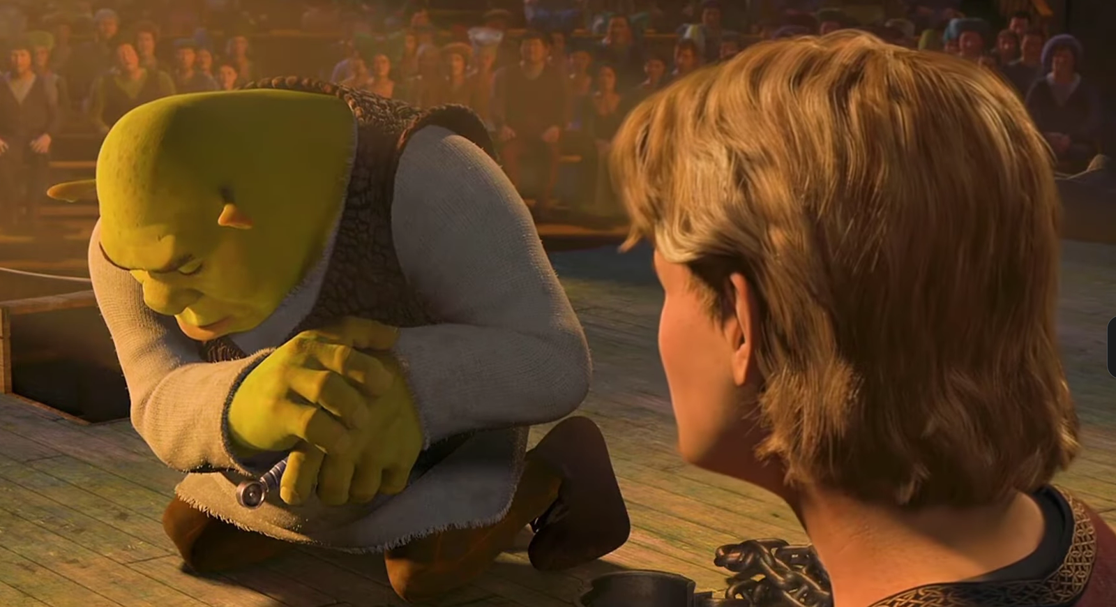 Здесь начинается турнир, и огр случайно оказывается победителем, что в конечном итоге приводит его к Фионе. Поклонникам нравится забавная фраза от Фаркваада, и они часто используют её в качестве мема для описания ситуаций, близких к реальности.