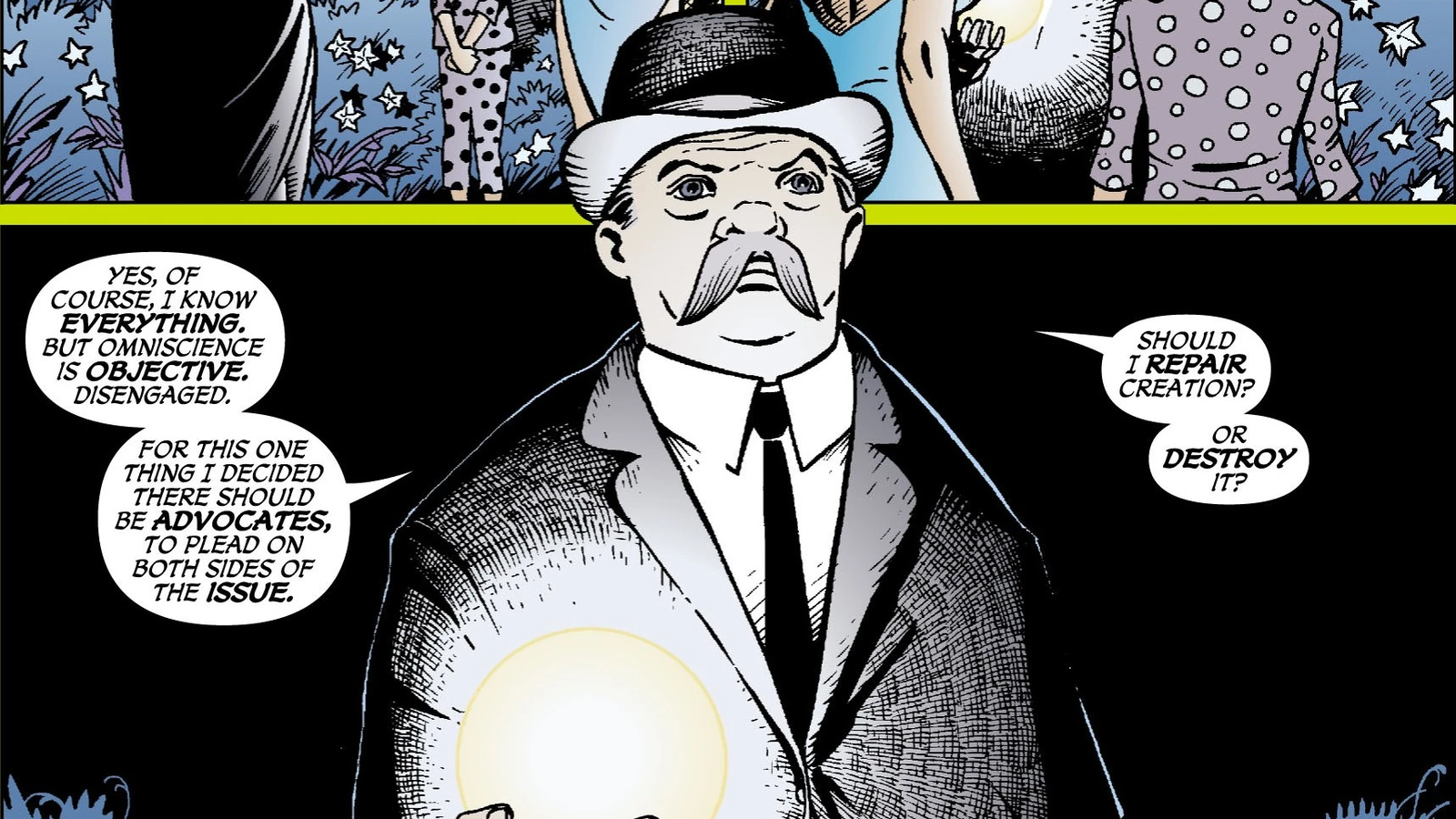 Всё во Вселенной DC – прошлое, настоящее и будущее – происходит от его самого существа. Как конечный источник всего творения, он несёт ответственность за создание мира DC, и всё, что происходит в нём сейчас и навсегда, является в конечном итоге результатом его влияния.