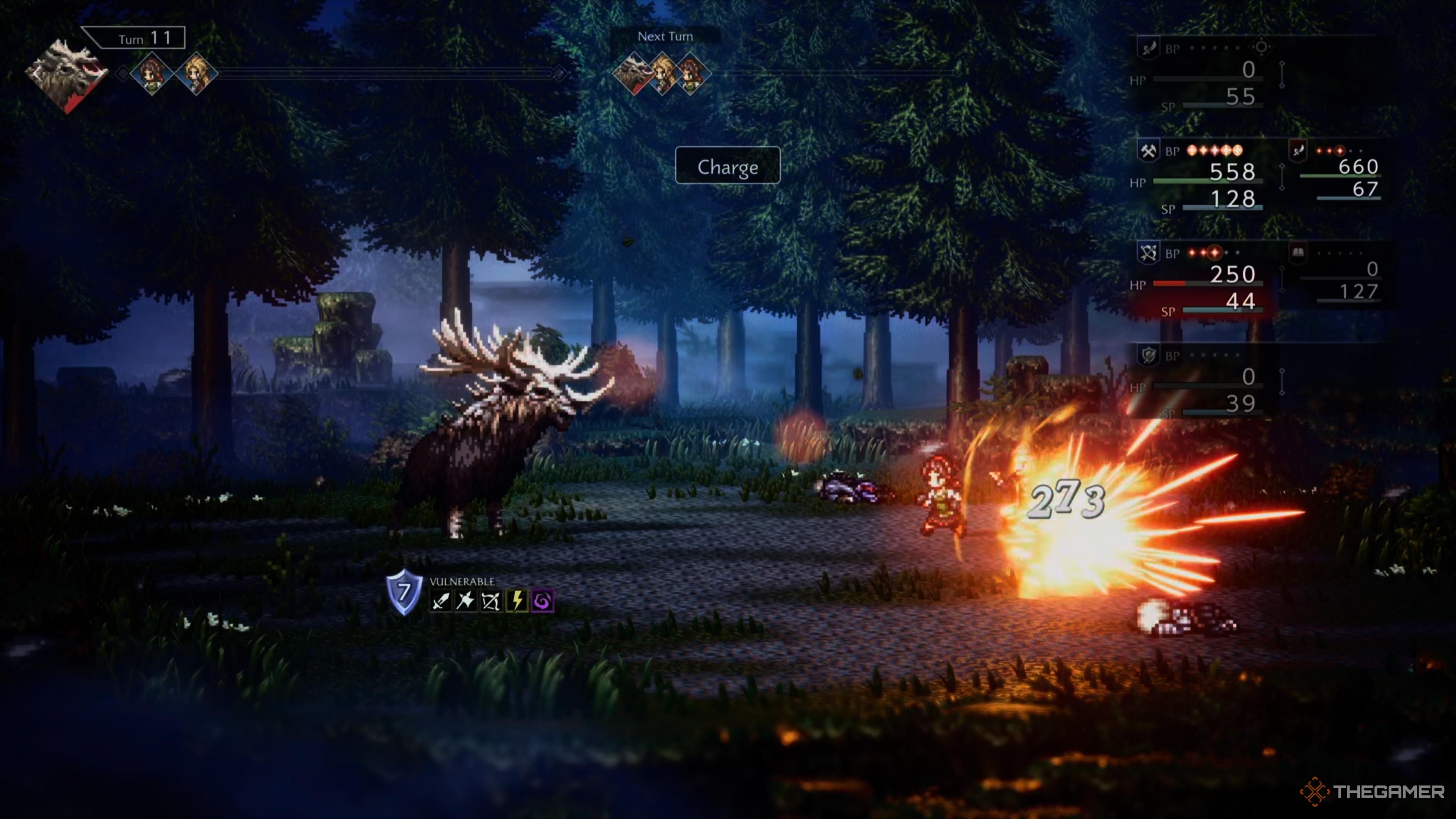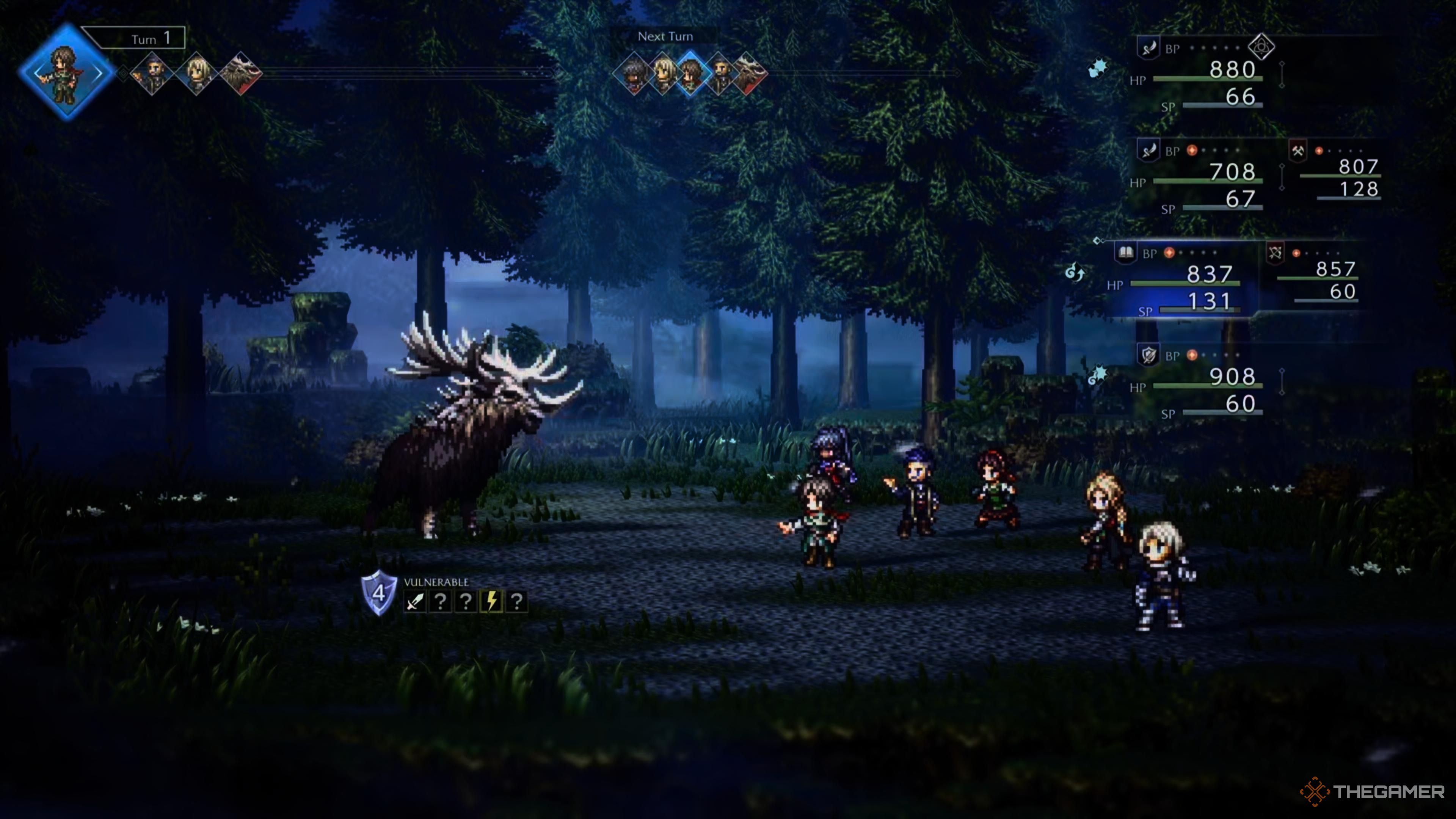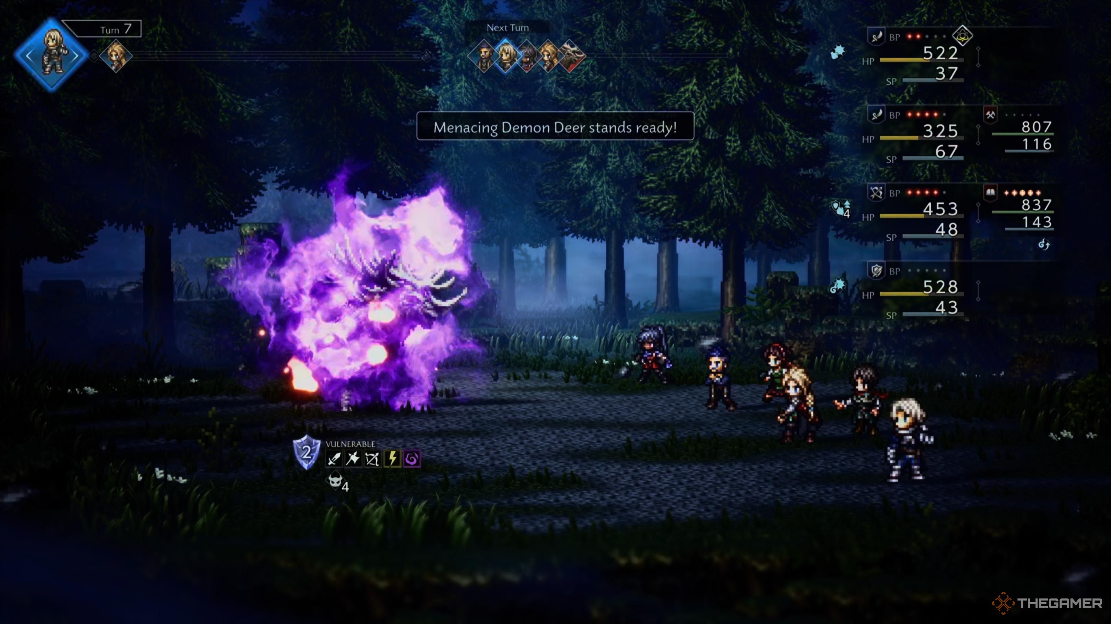 Окей, так я выяснил лучший способ победить этого парня! В основном, вам нужно держать Стию в безопасности на заднем ряду – таким образом она сможет лечить всех, не получая урона. Ключ в том, чтобы накапливать её BP, чтобы она могла либо выпустить мощную Первую помощь, чтобы действительно поднять всех, либо просто повторно использовать свой топор, чтобы помочь одолеть этого оленя. Это простая стратегия, но она работает!