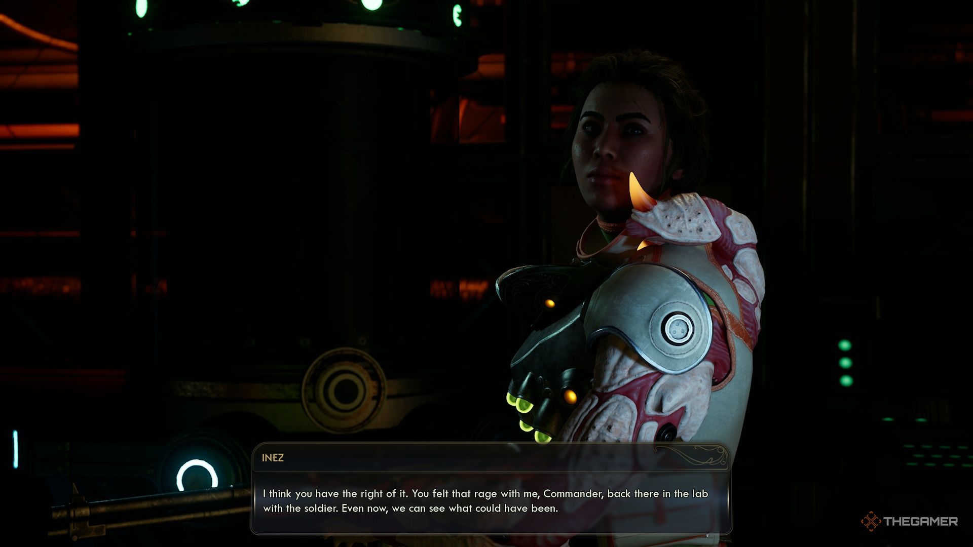 По прибытии она использует компоненты для пересадки, которые вы нашли, чтобы улучшить Инез. Если вы победили доктора, она установит Механическое Усиление. Если вы позволили ему жить, вы сможете выбрать одно из двух улучшений: Урсопод, который повышает защиту, или Мантикин, который фокусируется на атаке.
