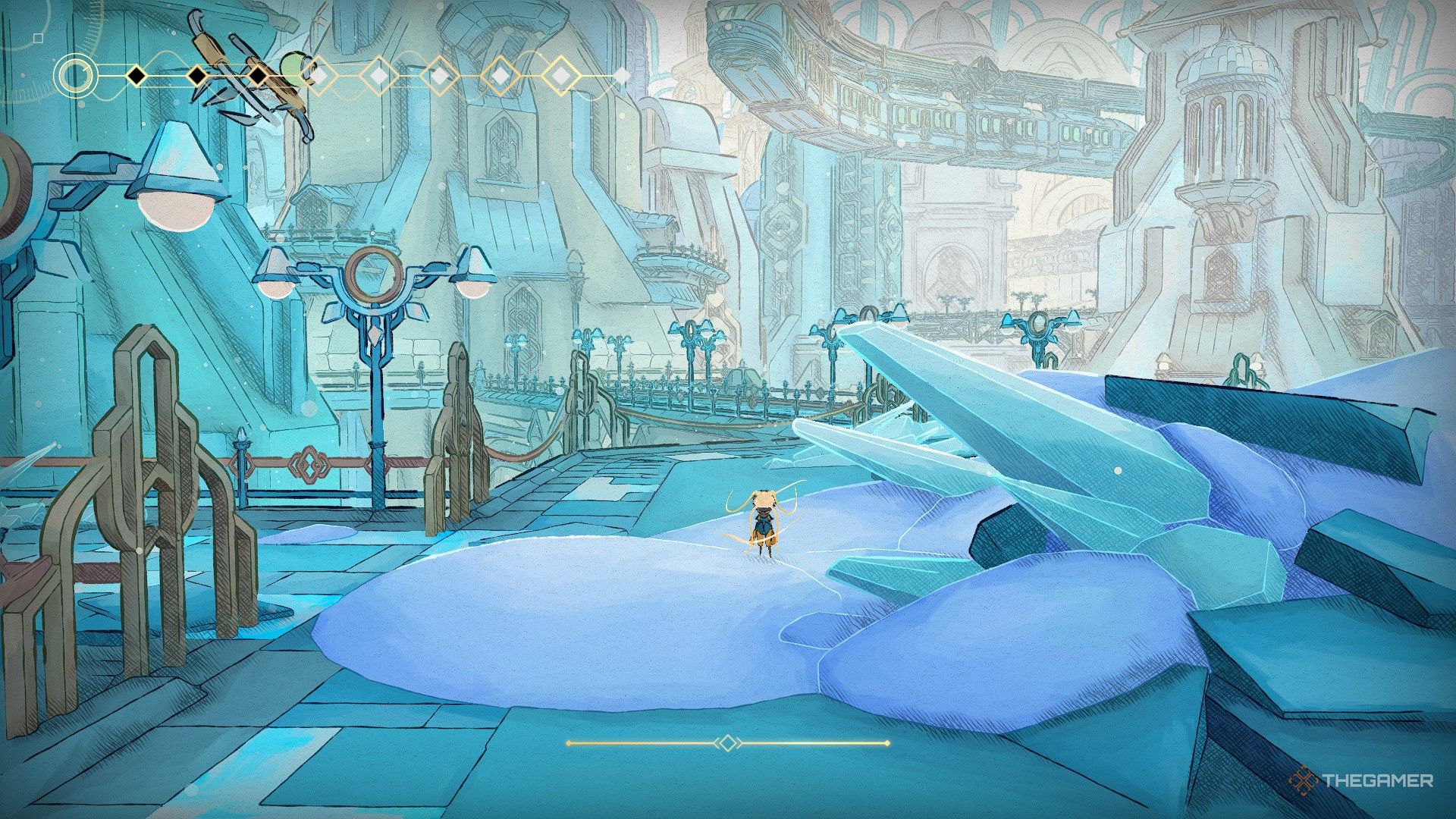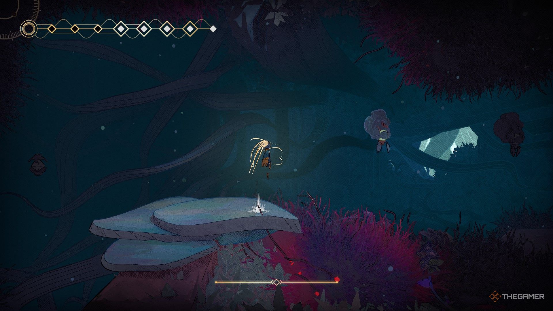 Важная вещь, которую нужно быстро освоить, заключается в том, что атака врага возвращает вам двойной прыжок. Это означает, что сражения – это не только об избежании урона – вы можете использовать их, чтобы помочь себе перемещаться. Правильно рассчитывая время атак, вы фактически можете оставаться в воздухе намного дольше, чем обычно.