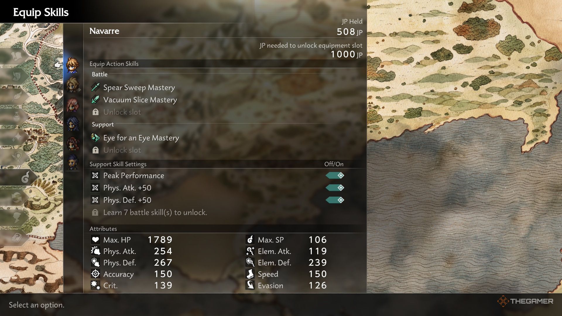 Не тратьте все ваши очки работы только на изучение навыков из меню «Изучить навыки». Также хорошая идея — потратить несколько очков работы на открытие слотов для боевых и вспомогательных навыков. Заполнение этих слотов мастерствами, которые вы находите по пути, может быть не менее полезным для усиления вашей команды.