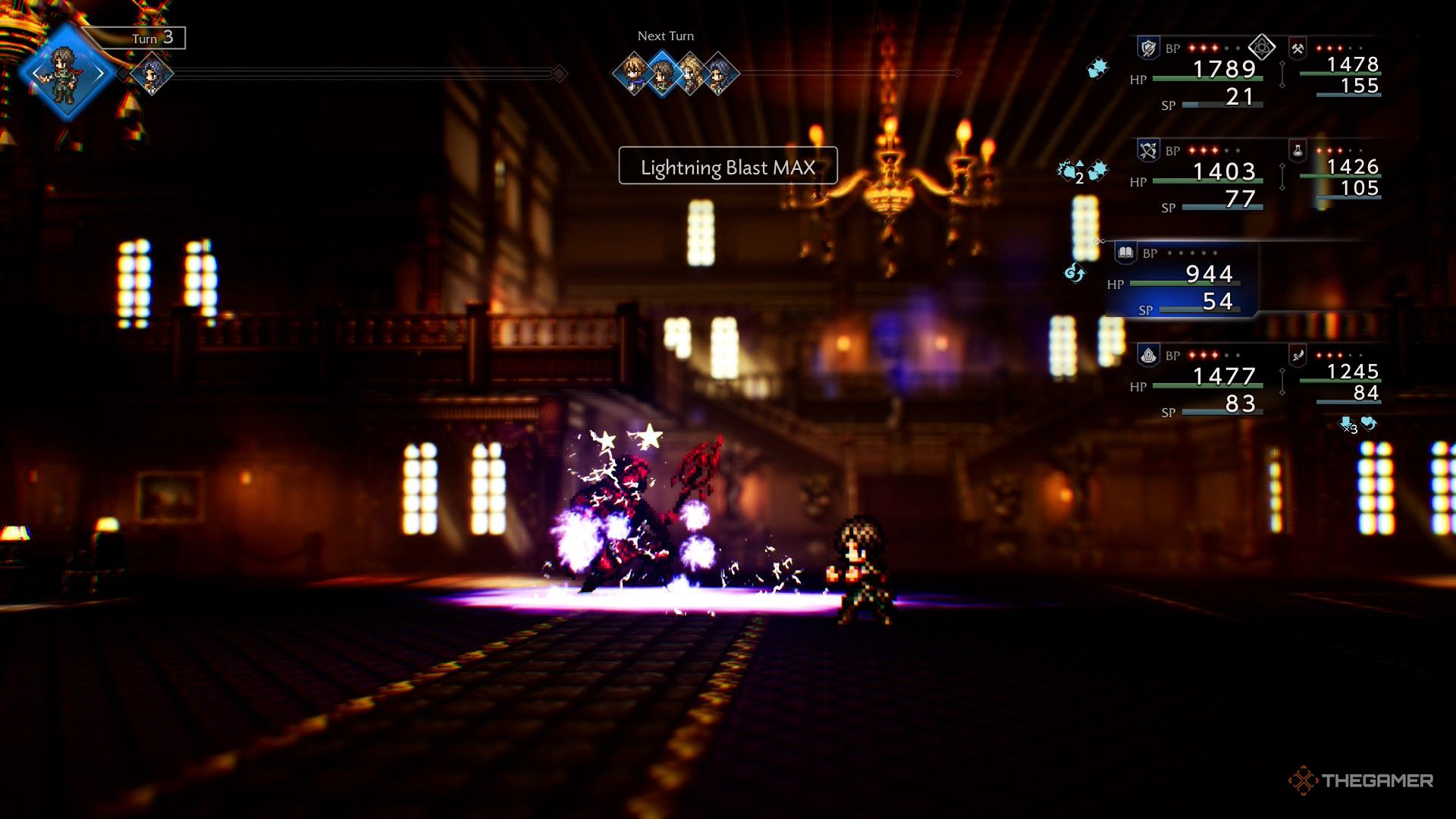 Переключение персонажей также меняет того, чей сейчас ход, и вам нужно подождать полный ход, прежде чем вы сможете переключиться снова. Это особенно полезно, если один из ваших персонажей на передовой вот-вот будет повержен — вы можете переместить его в тыл для временной безопасности! Кроме того, некоторые исцеляющие способности могут восстановить всю заднюю линию, быстро подготовив ваших резервных персонажей к бою. Верните ранее уязвимых бойцов в сражение!