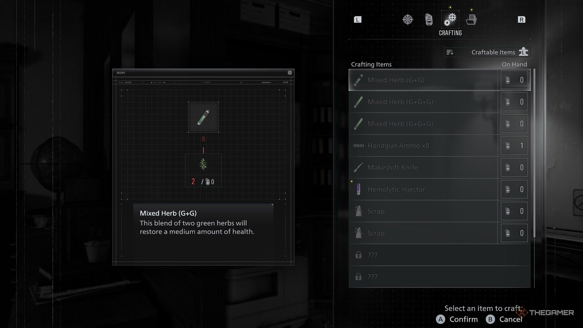 Requiem делает крафт простым, и с небольшим планированием вы можете значительно упростить большинство испытаний. Леон и Грейс могут остановить действие в любой момент, чтобы создавать предметы, начиная от простых трав и заканчивая мощными гранатами.