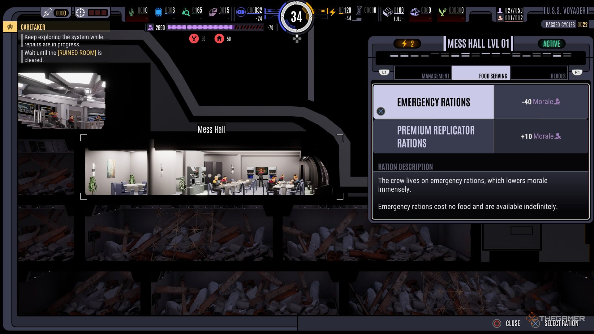 Поддержание боевого духа вашей команды важно, поэтому вам, возможно, захочется обеспечить их лучшей едой. Но как только Ниликс станет корабельным поваром, а вы улучшите камбуз, эти дорогие пайки больше не будут иметь значения. Лучше потратить немного меньше на еду в начале, так как вы сэкономите ресурсы и энергию в дальнейшем. Просто убедитесь, что вы предоставляете Ниликсу всё необходимое для качественного выполнения его работы.