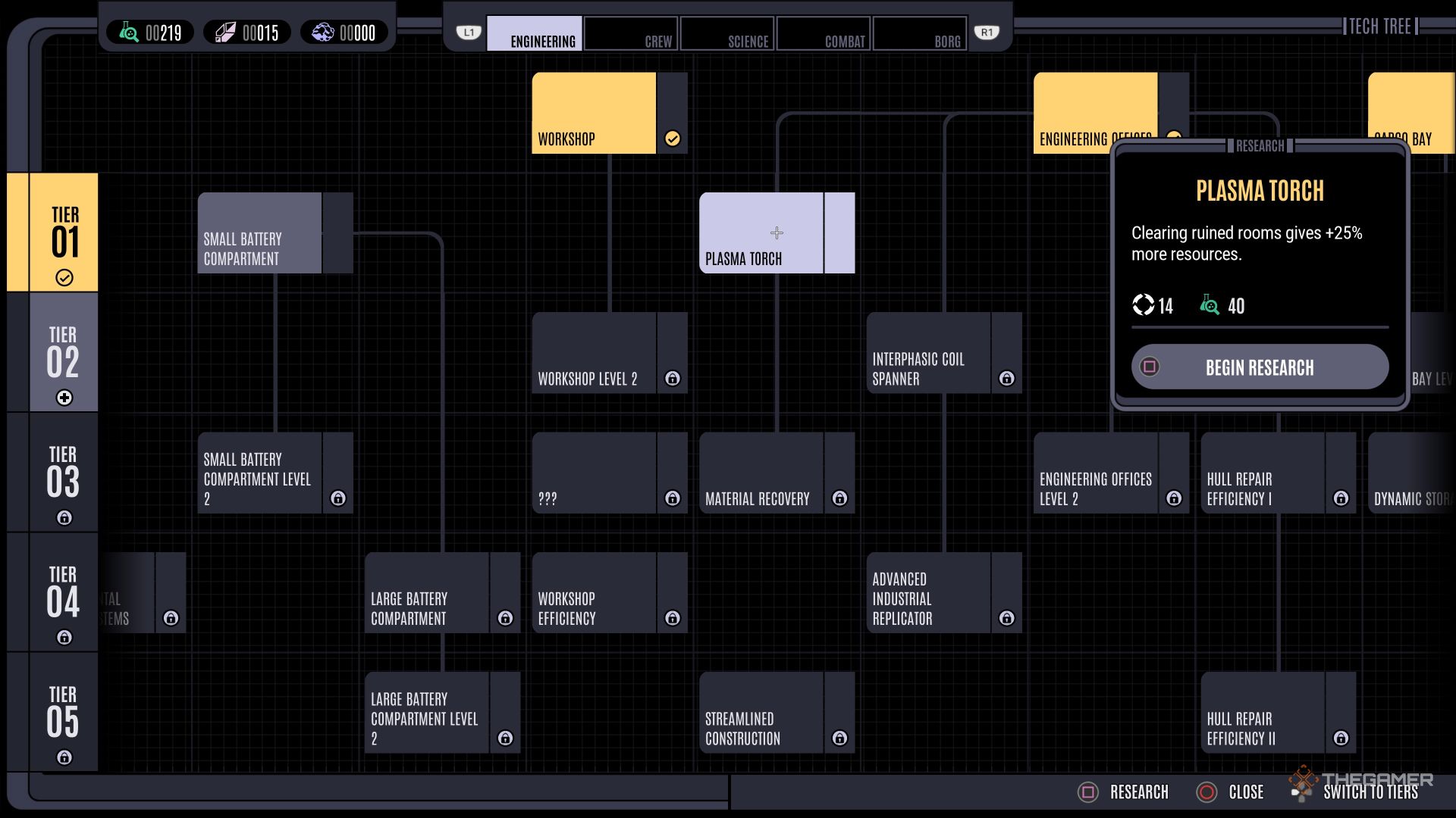 Плазменный факел — важный инструмент, который стоит разблокировать в начале игры. Рабочие группы в основном используют его для сбора ресурсов, но его также можно использовать в качестве временного оружия для ваших отрядов. Важно отметить, что Плазменный факел также увеличивает количество собираемых ресурсов.