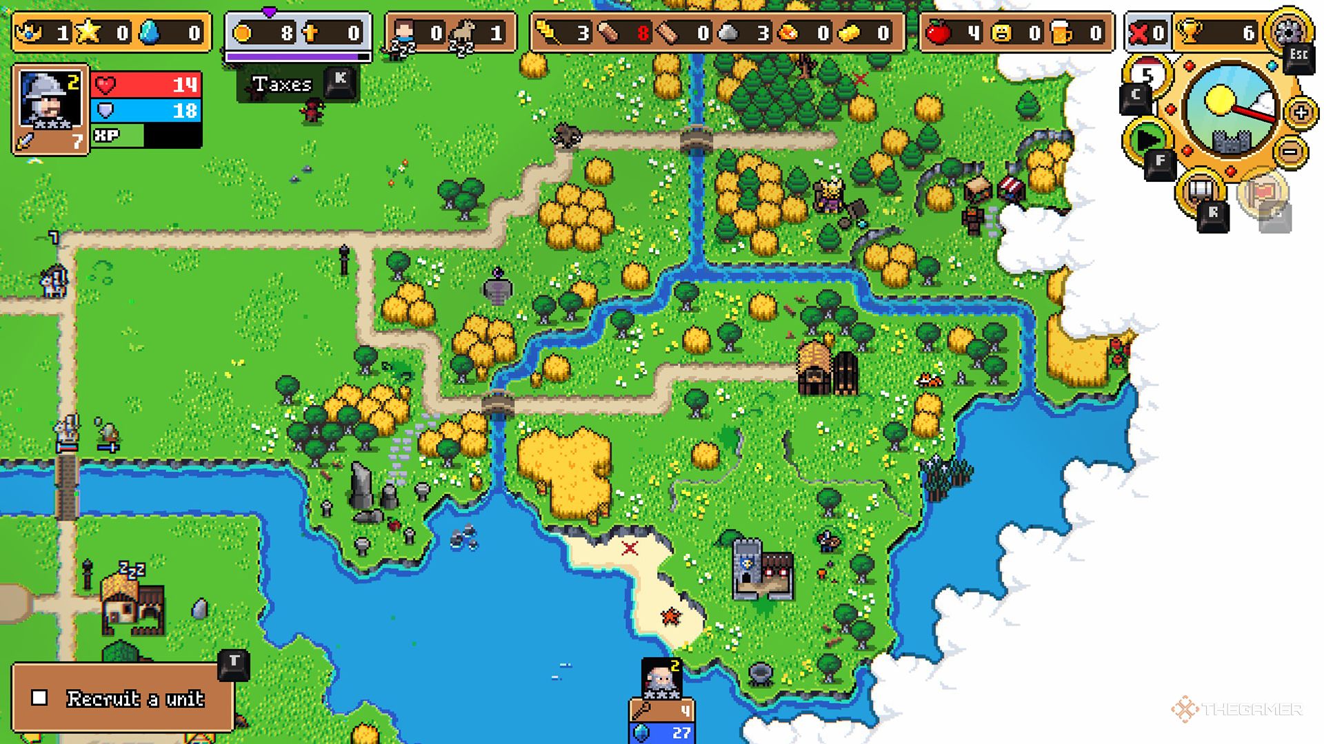 Еда на удивление важна, поэтому поддерживайте хороший запас под рукой. Каждую ночь, после сражений, ваши отряды будут возвращаться в Таверну. Каждый из них съест один кусок еды, что вознаградит их очками опыта. (Ваш Герой не нуждается в еде.)