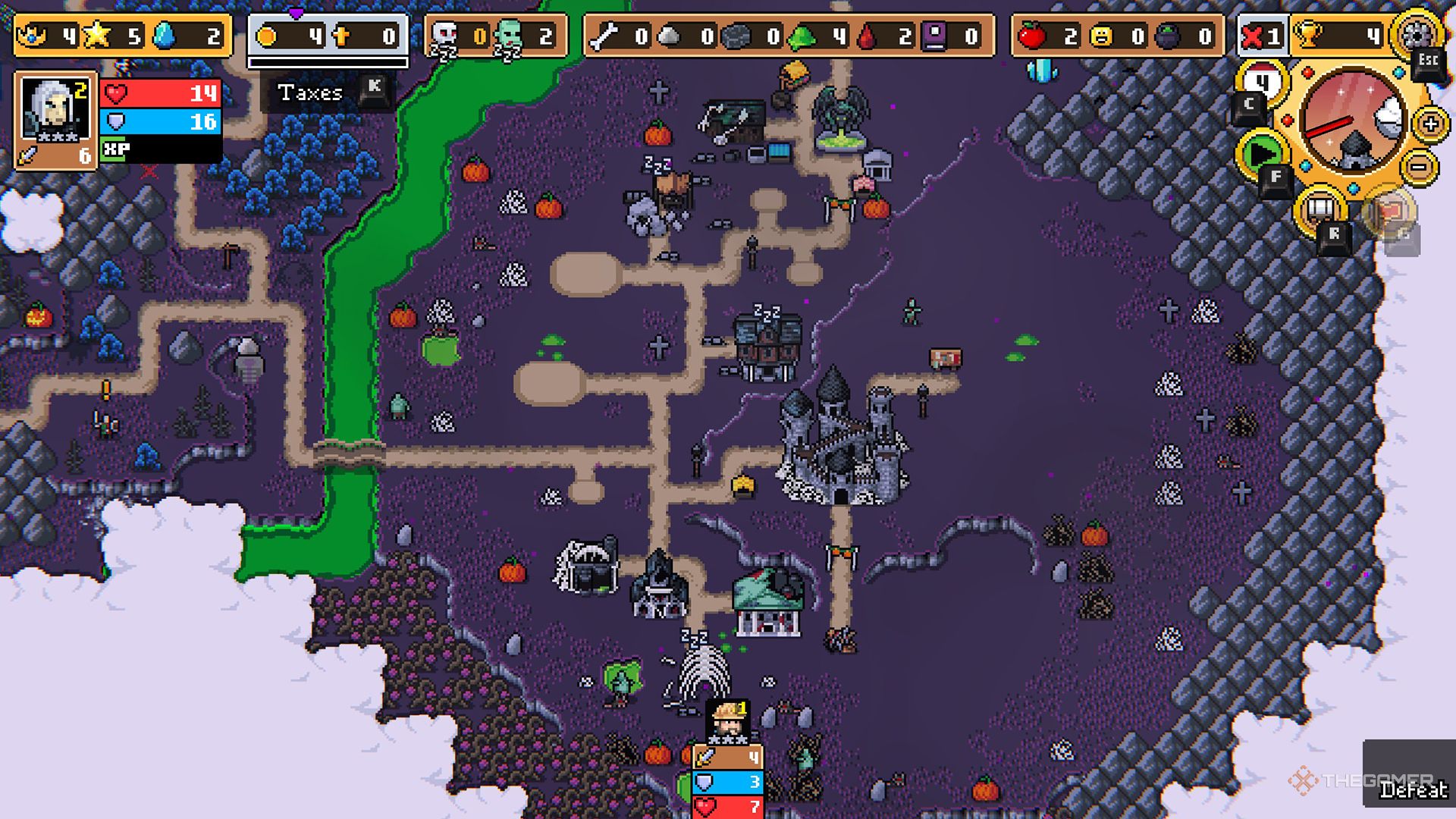 Ключевое различие между королевствами заключается в том, что Нежити-Рабочие могут выполнять только одну работу в день, но их проще создавать. Вам придется тщательно управлять созданием новых Рабочих и использовать их для сбора ресурсов.