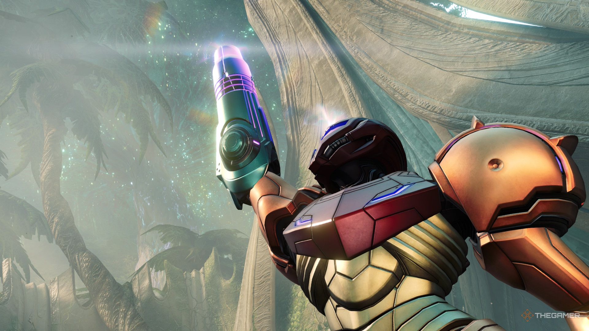 Бои в Metroid Prime 4 обычно прямолинейны. Самус может легко захватывать движущихся врагов простым нажатием на курок, а кнопки управления позволяют уклоняться и перемещаться из стороны в сторону.