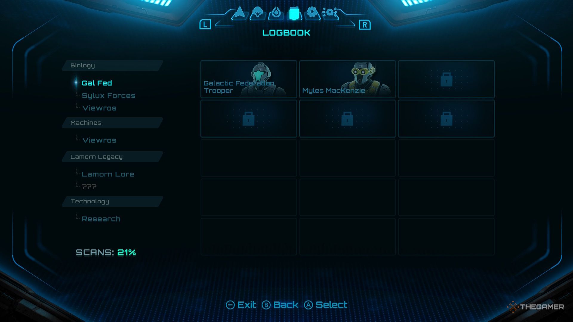 Сканирование объектов на протяжении всей игры создает глоссарий, который затем открывает новый контент в галерее главного меню.