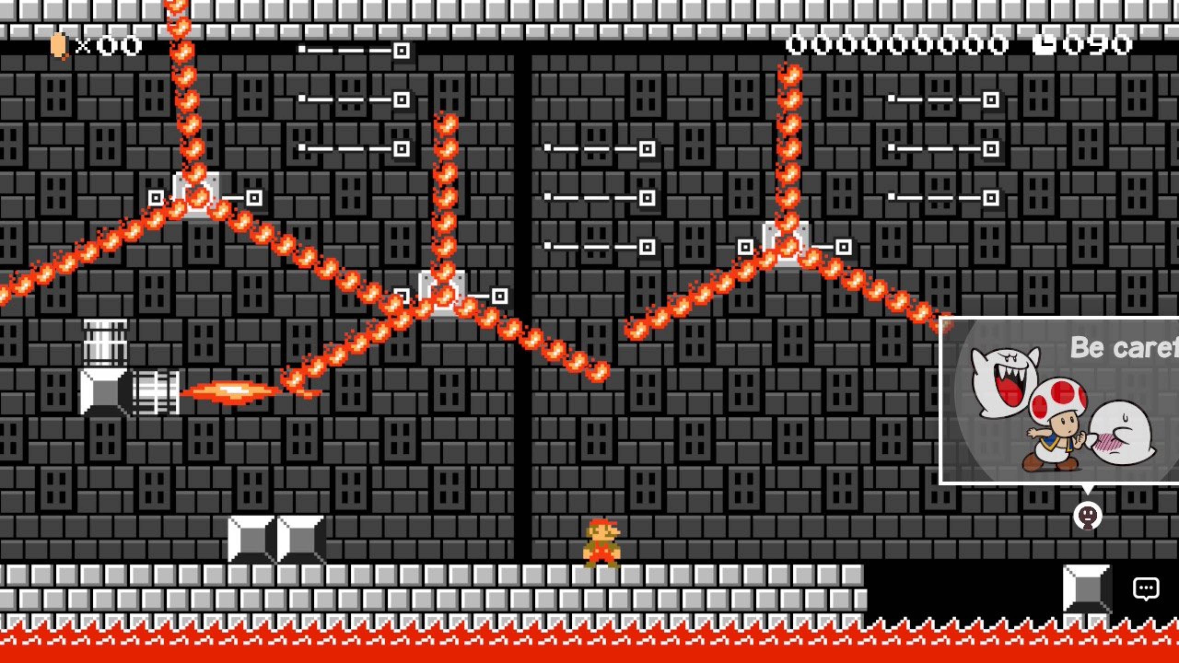Первая внутриигровая реконструкция уровня из фильма, с которой я столкнулся, была создана пользователем по имени KoopsKngdm (также известный как KoopsReturns в Twitter). Уровень из фильма знаменит своими сложными вращающимися огненными барами и препятствиями – задачами, которые всегда были сложными для прохождения в 2D Mario играх.