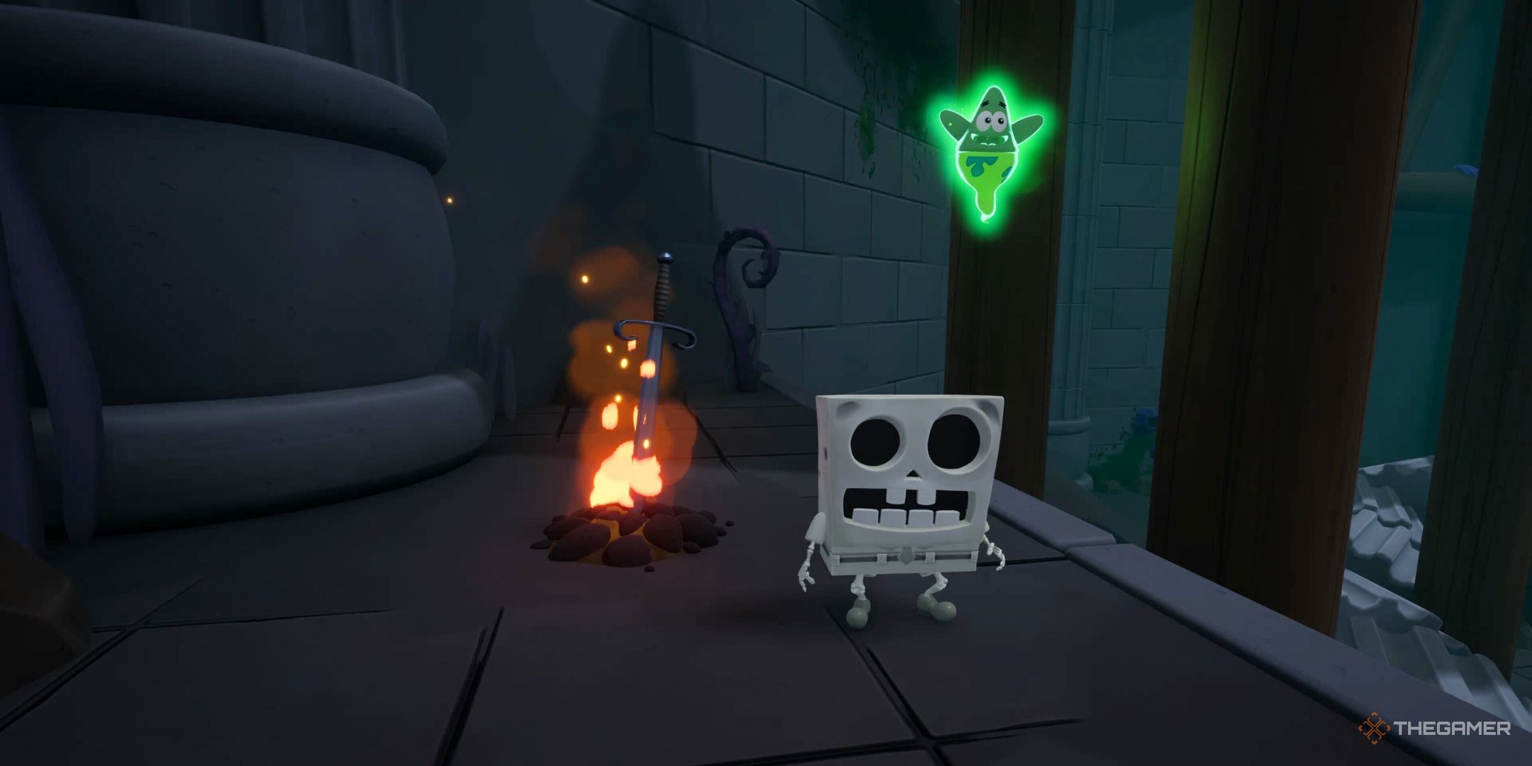 Во время особенно скучной части игры Спанч Боб и Патрик натыкаются на огромную комнату с большой клеткой – она сразу же напомнила мне о Nexus. Как только вы входите, вы заметите меч, воткнутый в землю, рядом с чем-то, похожим на камин. Становится совершенно ясно, что должно произойти.