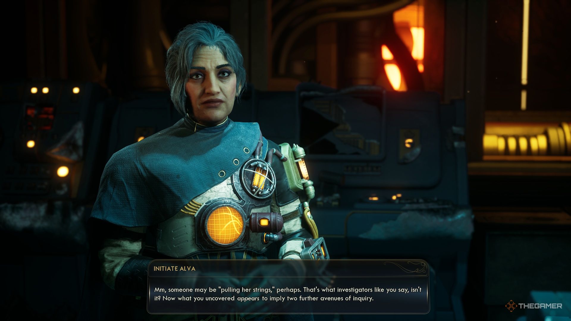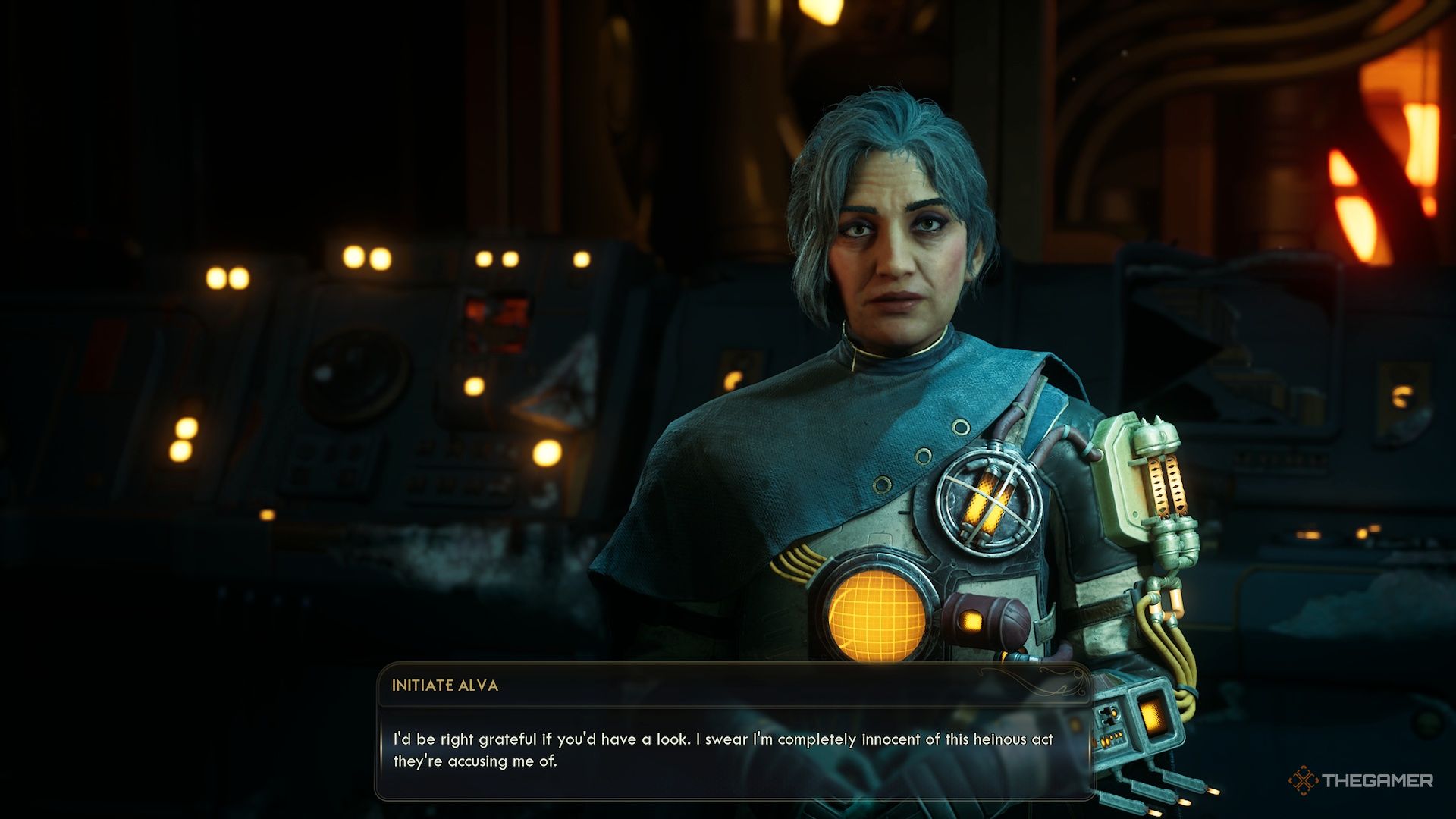 Помимо них, вы обнаружите Алву, содержащуюся в комнате. Вы можете поговорить с ней через переговорное устройство. Она явно что-то скрывает, но вам нужно согласиться расследовать Хранилище Записей, чтобы найти доказательства её невиновности.