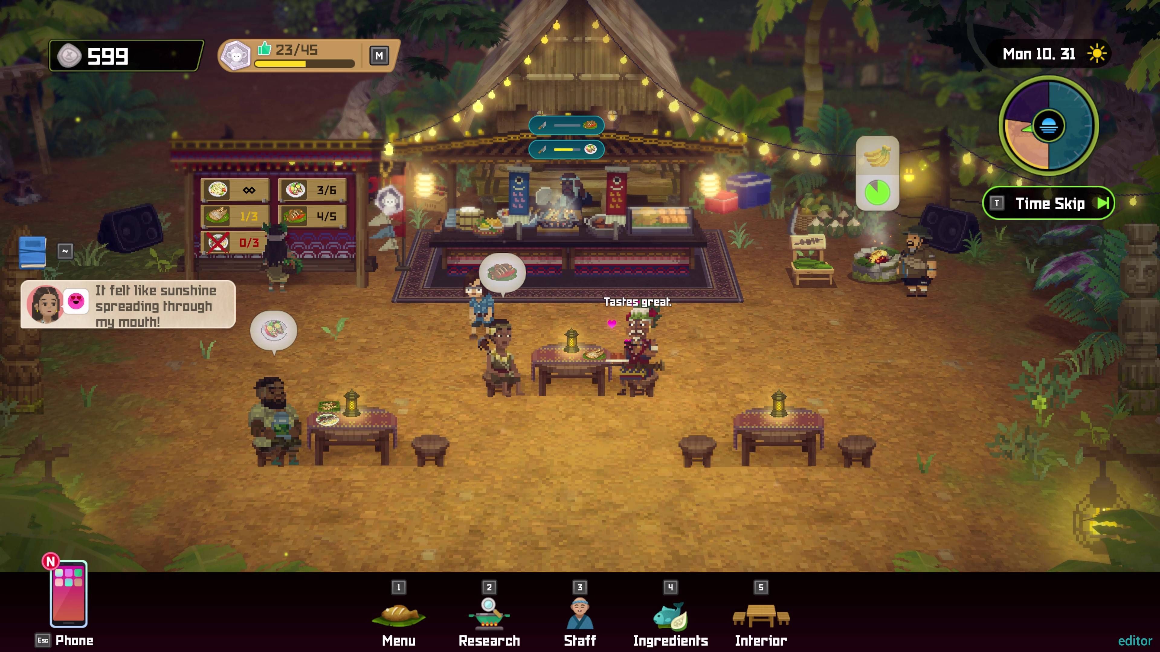 Как и в Bancho Sushi, в Bancho Grill вы будете получать запросы на уникальные блюда. Выполнение этих запросов может занять время, так как вам нужно будет собирать определенные ингредиенты. Но, если вы будете последовательно готовить эти блюда и узнавать жителей деревни, некоторые из них могут присоединиться к вашей команде и помочь вам более плавно управлять грилем.