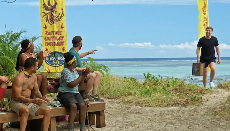 Окей, так что на Survivor стало действительно интересно во время возвращения Аукциона. Сразу после его окончания Джефф объявил, что MrBeast подкидывает нам неожиданность – совершенно новый поворот, призванный всё перевернуть и создать серьёзный хаос. Я сразу же был на грани стула!