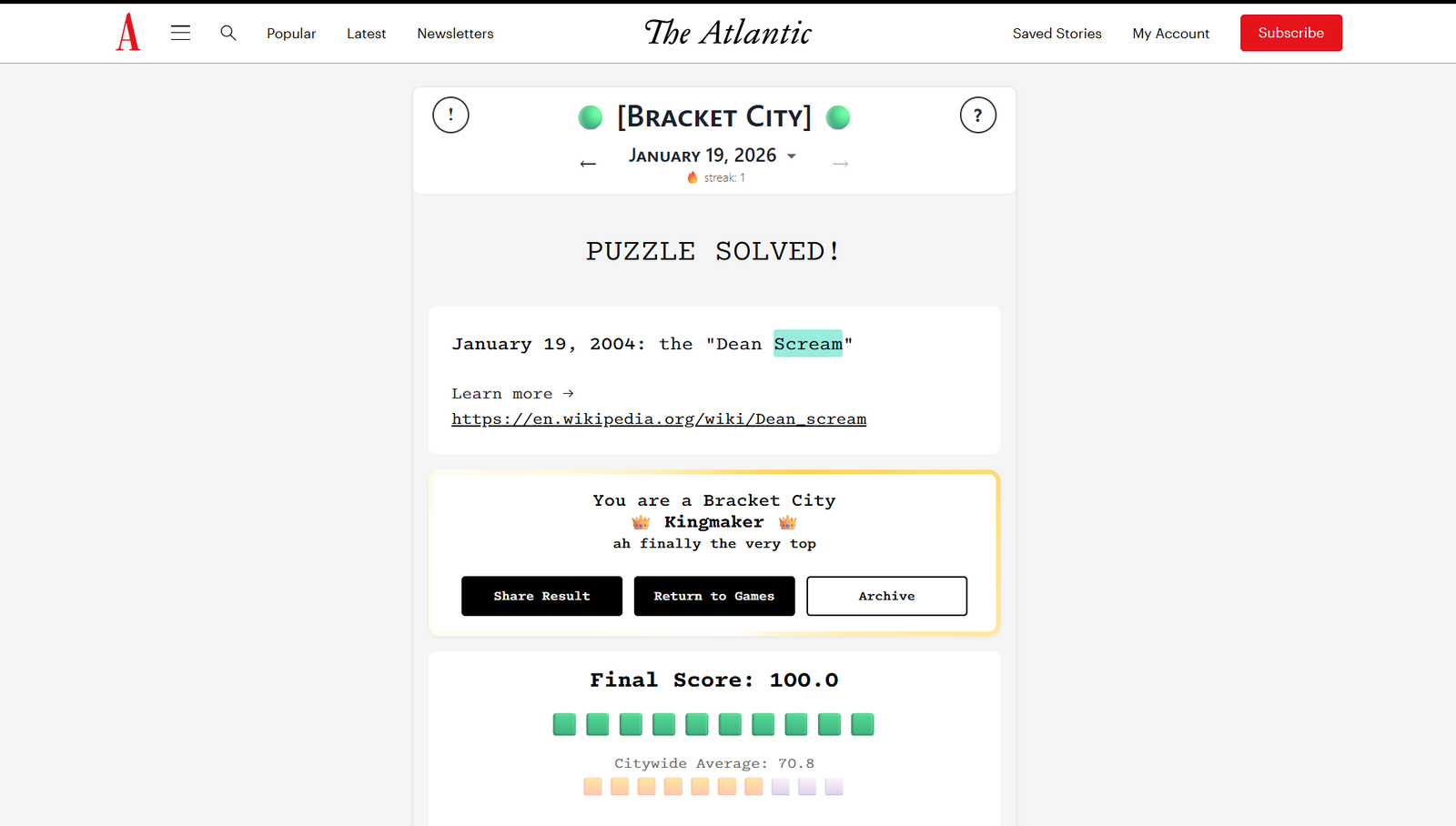 The Atlantic Bracket City Solution для 19 января 2026 года.