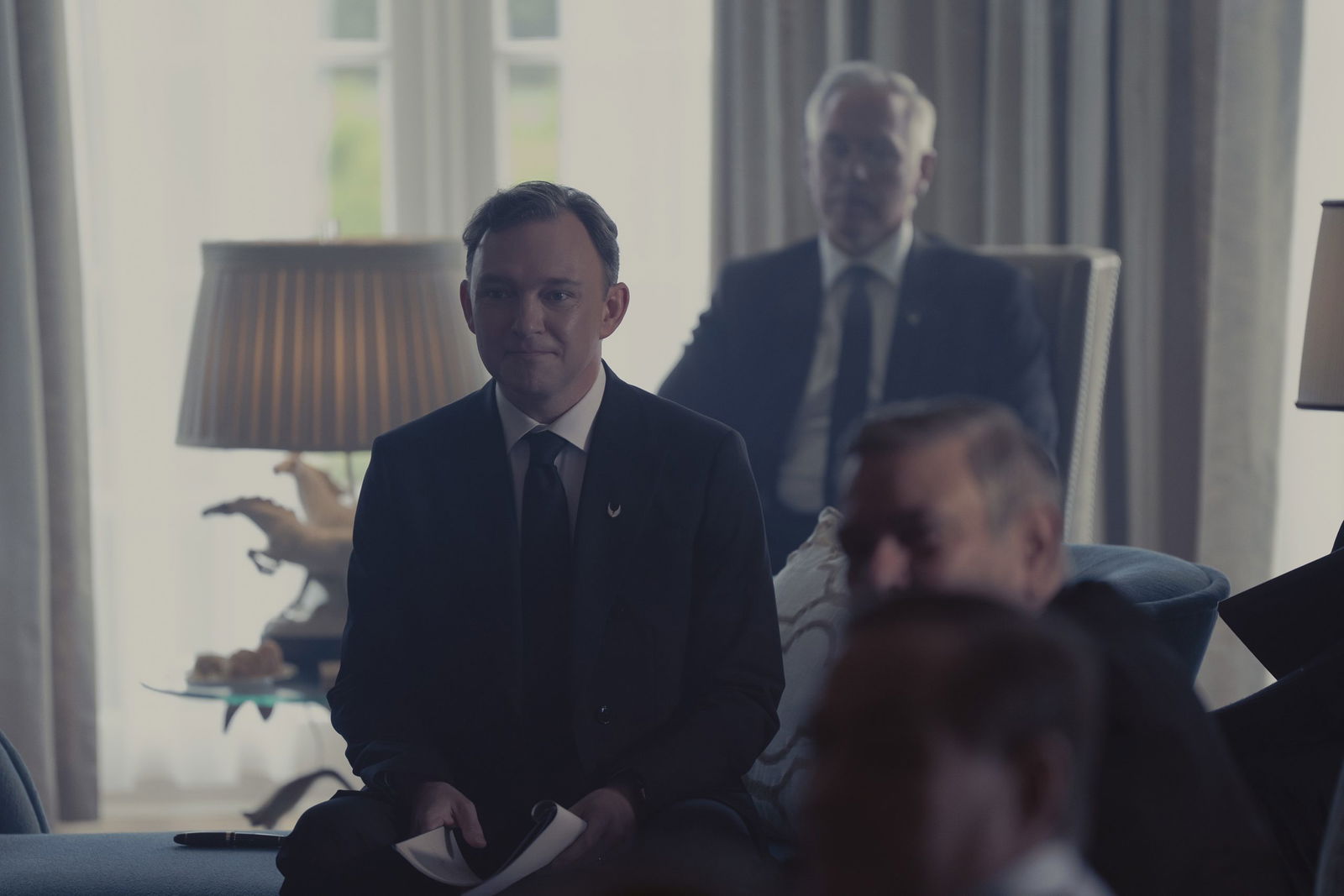 Агнес возвращается домой и обнаруживает, что Гарт курит на улице. Она отчитывает его, и он извиняется, прежде чем поздравляет её. Она заходит внутрь и удивлена, обнаружив, что все региональные командиры ждут её в семейной комнате. Это вынуждает её поделиться секретом, который она скрывала – секретом, о котором не знает даже её отец, Nate Corddry.