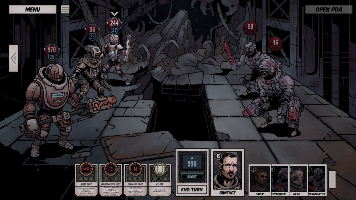 Окей, так, в общем, меня забросили в этот мир, где я исследую эти жуткие, заброшенные космические корабли. Я беру задания – некоторые из них очень опасны – и должен отбиваться от всяческих врагов, используя пошаговую боевую систему. Есть полноценная сюжетная кампания, которую можно пройти, а если я хочу быстрого испытания, то есть и режим арены. Но лучшая часть в том, что миссии разные каждый раз, когда я играю, так что есть тонны реиграбельности – я могу продолжать исследовать и сражаться долгое время!
