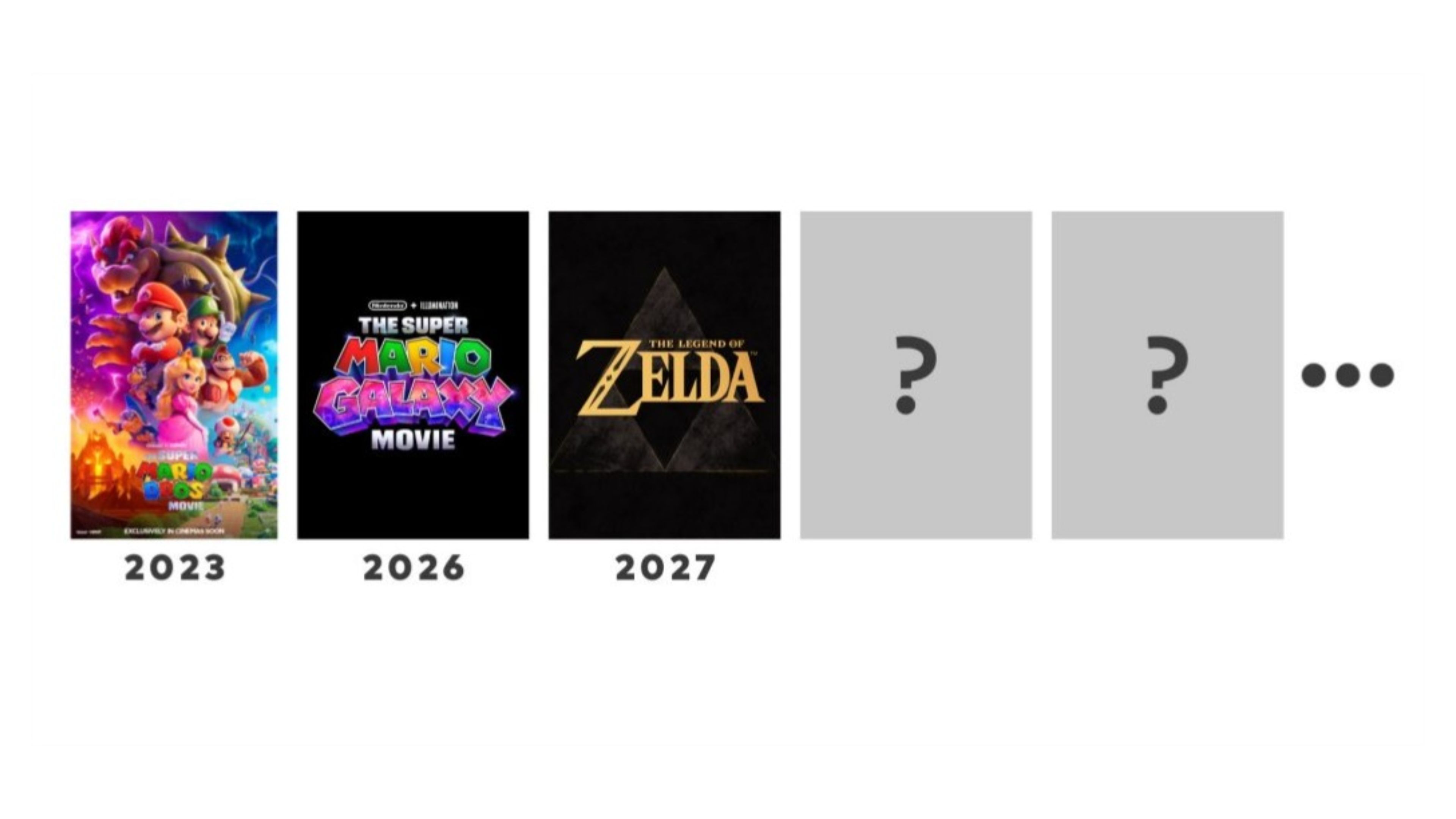 Хотя эта новость интересна, она не раскрывает ничего нового. Nintendo оставила два пустых слота, отмеченных вопросительными знаками, что говорит о том, что они уже запланировали свои следующие два фильма после адаптации Zelda и, возможно, даже находятся на ранней стадии производства. Они просто ещё не готовы поделиться этими деталями.