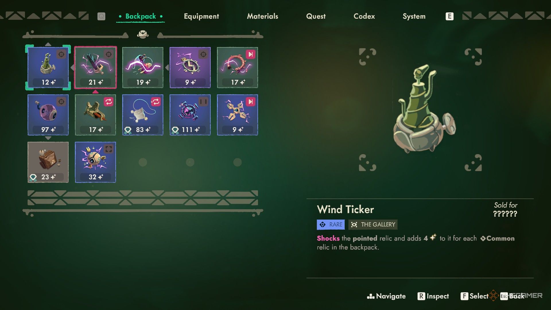 Мы рекомендуем сохранять реликвии, добавляющие эффекты другим (например, Шок, Ожог или Окаменение) и хранить их в безопасных местах, где эти эффекты не будут активироваться. Вам часто понадобятся эти эффекты, когда вы найдете более мощные реликвии, и использование их на редкой реликвии даст ей больший прирост, чем использование на обычной.