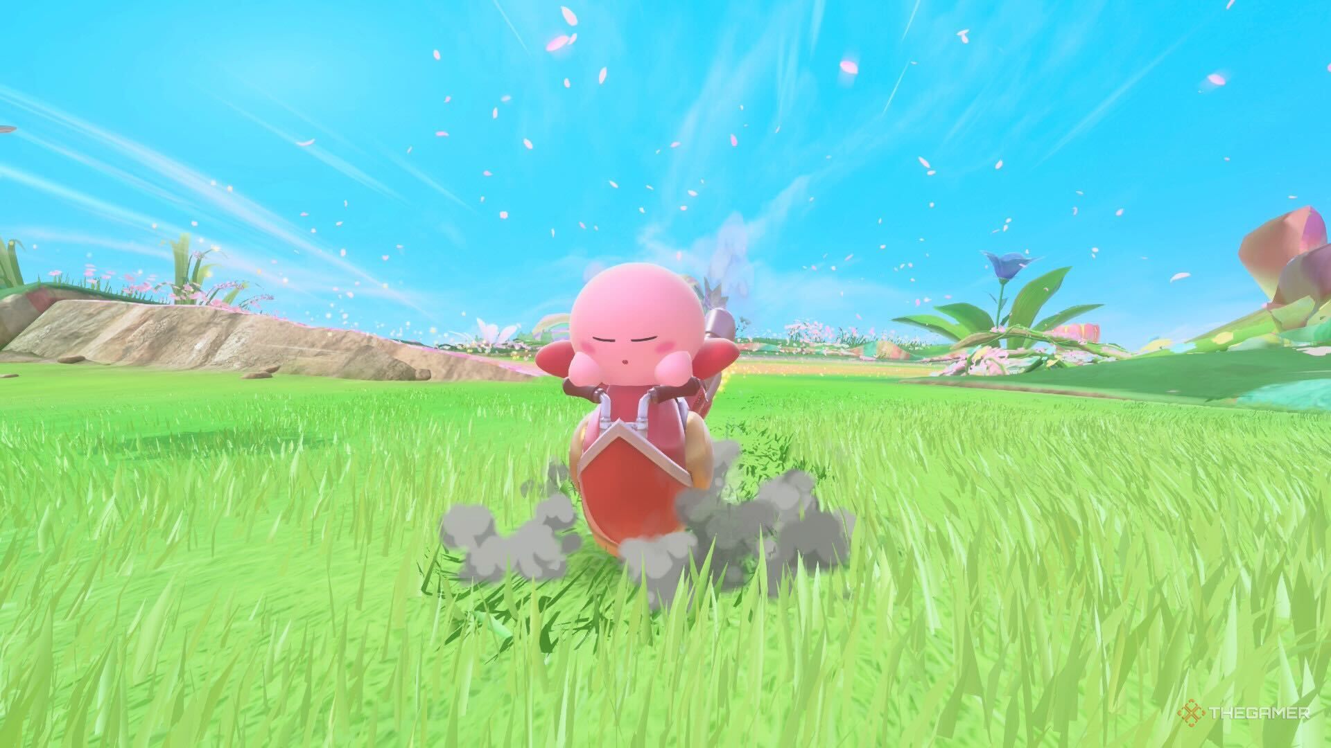 Самым сложным аспектом изучения Kirby Air Riders является освоение схемы управления, в которой всего две кнопки. Одна кнопка активирует специальное движение, а другая управляет почти всем остальным – включая ускорение и всасывание врагов.