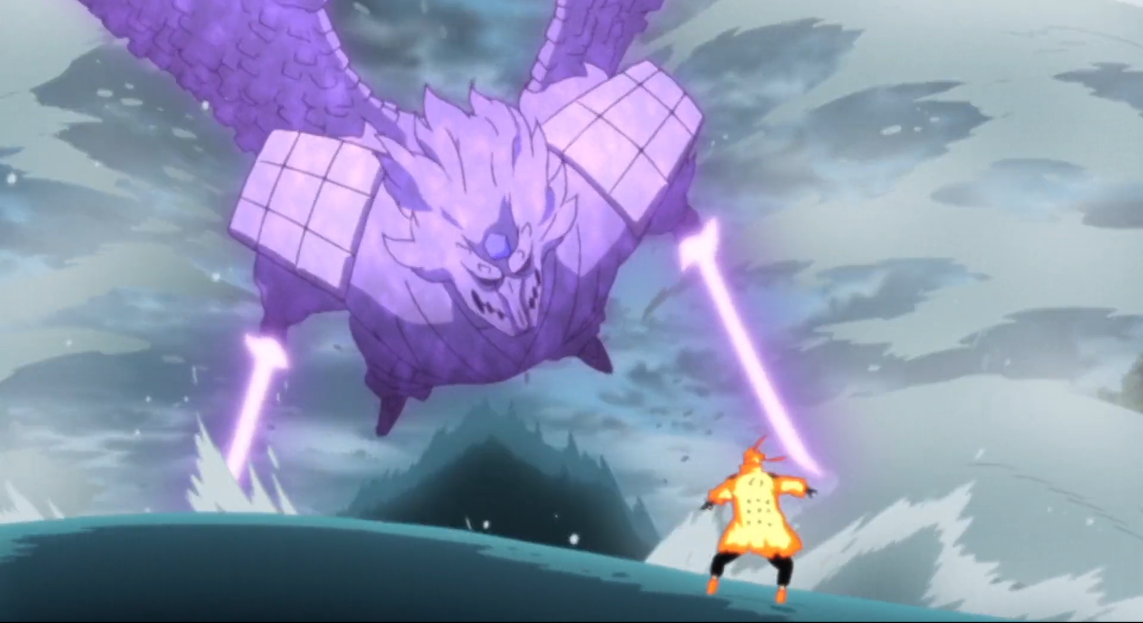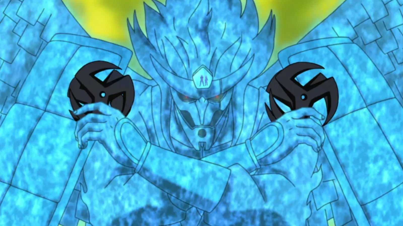 Какаши достиг невероятно мощного состояния во время Четвертой Мировой Войны Шиноби, используя оба глаза Мангекё Шарингана Обито, создав Двойного Мангекё Сусаноо. Эта форма выглядит как стандартный Идеальный Сусаноо – массивный, бронированный гуманоид с такими особенностями, как крылья – но что действительно отличает его, так это разрушительное оружие, которым он обладает.