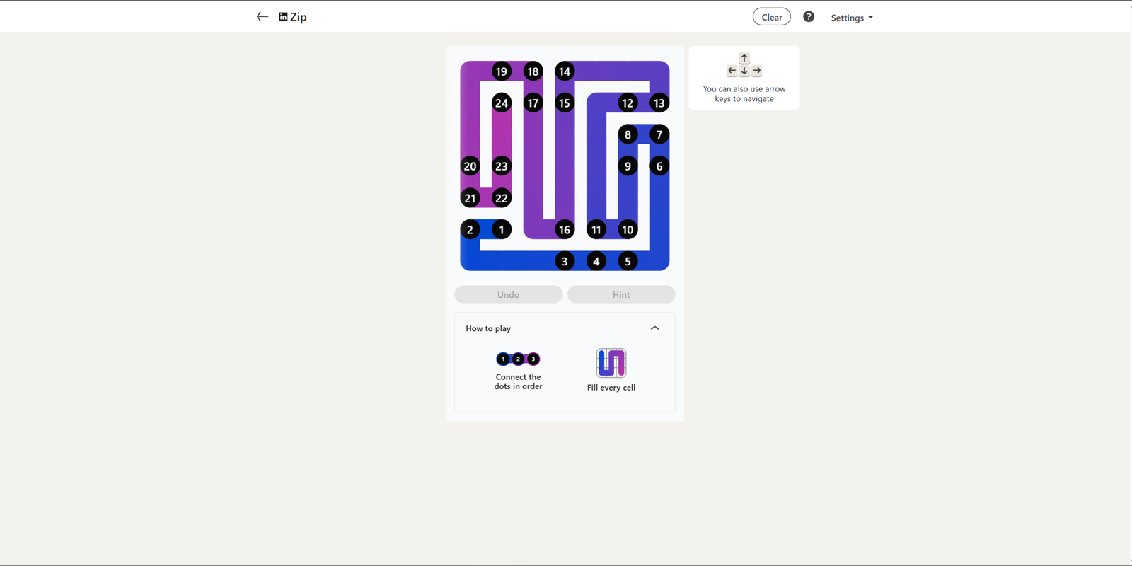 LinkedIn Zip Solution для 24 декабря 2025 года (#282)