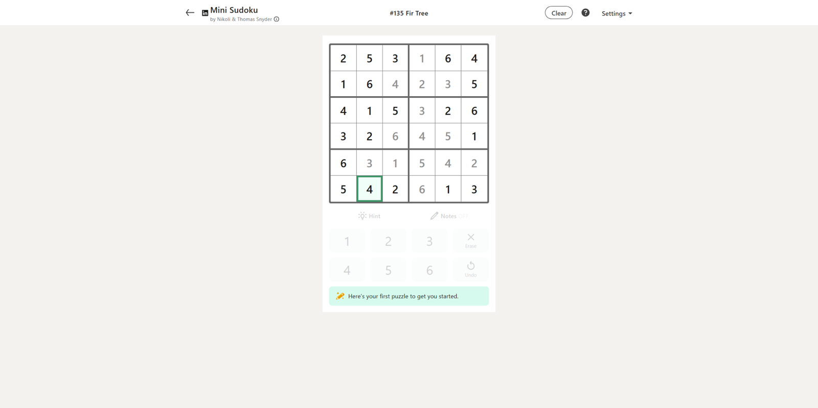 LinkedIn Mini Sudoku Solution for December 24, 2025 (#135)