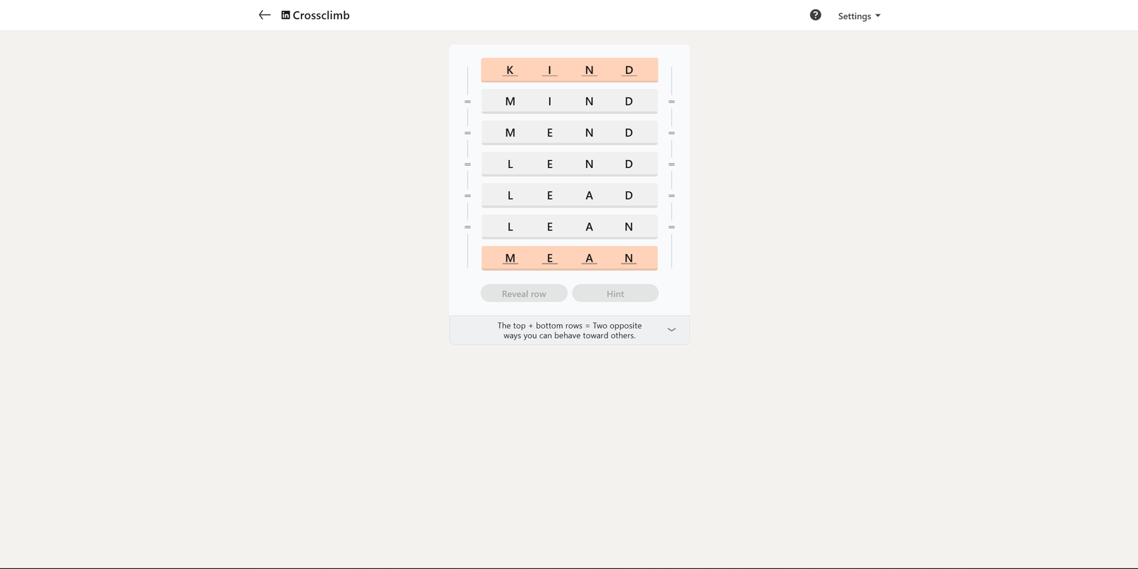 Вот решение сегодняшнего LinkedIn Crossclimb: