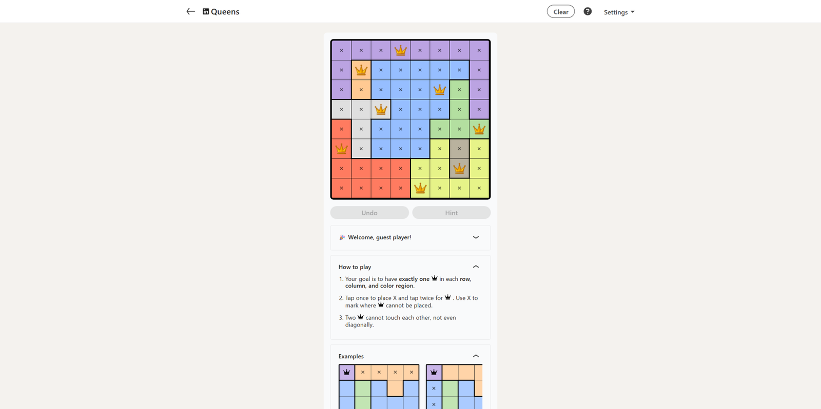 Сегодняшняя головоломка Queens — ещё одна сетка 8×8, и она немного сложнее вчерашней, но не сильно.