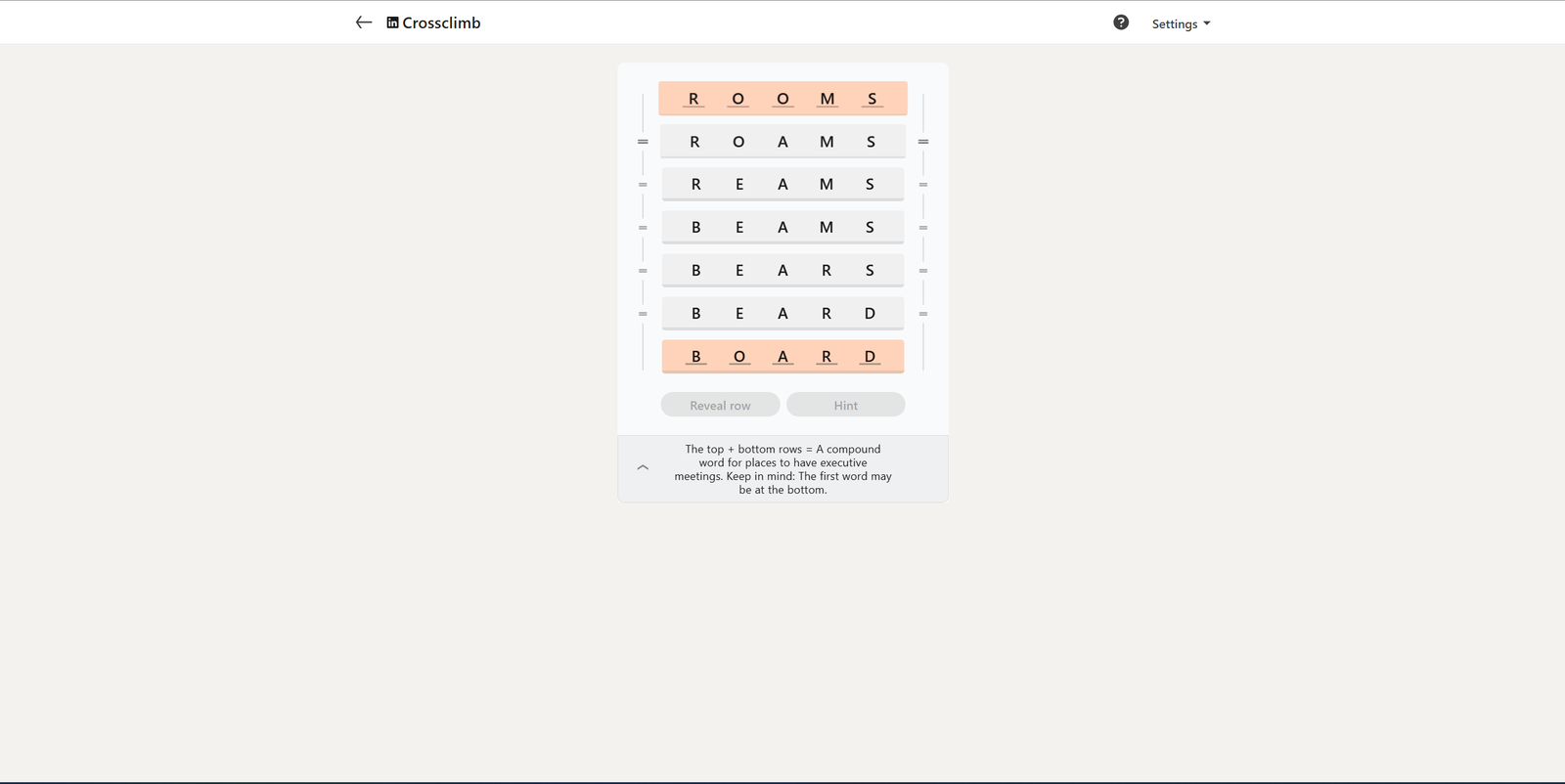 Вот решение сегодняшнего LinkedIn Crossclimb: