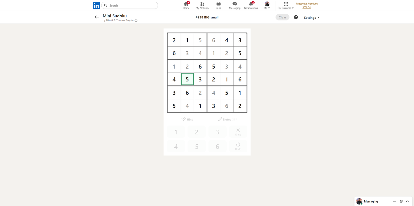 Решение LinkedIn Mini Sudoku за 6 апреля 2026 года (#238)