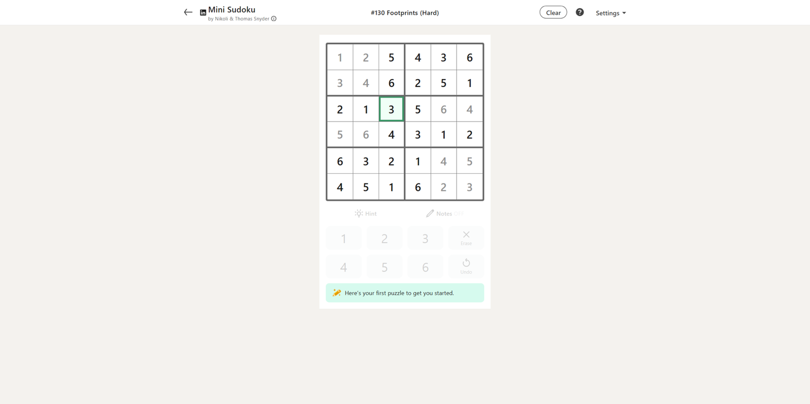 Решение LinkedIn Mini Sudoku за 19 декабря 2025 года (#130)