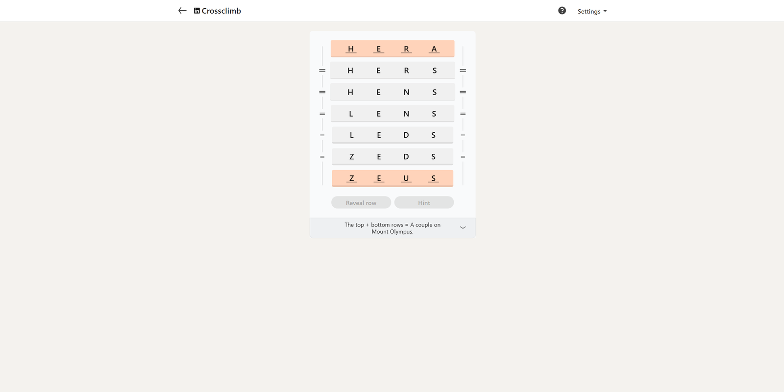 Вот решение для сегодняшнего LinkedIn Crossclimb: