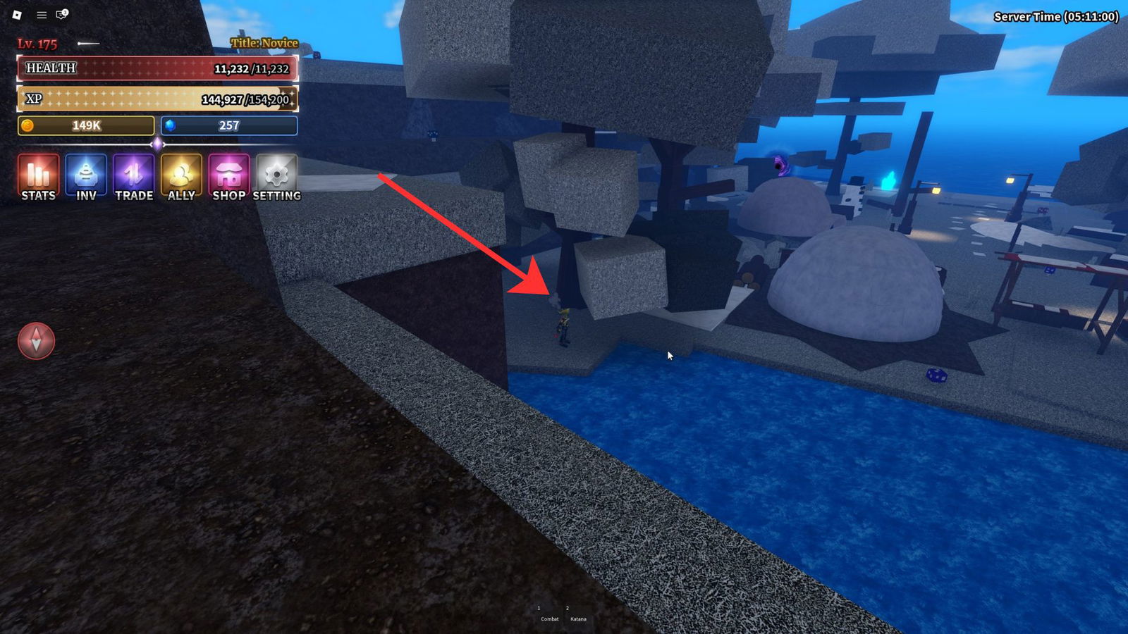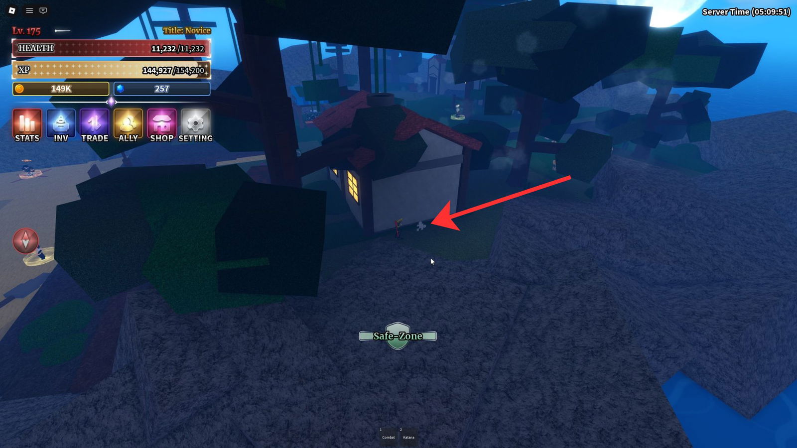 Как только вы прибудете на Остров Снега, направляйтесь прямо вперед от телепорта. Вы увидите два иглу. Пройдите за вторым иглу и справа от пруда, и вы найдете дерево. Четвертая часть Подземелья находится прямо рядом с этим деревом, спрятанная внутри Sailor Piece.