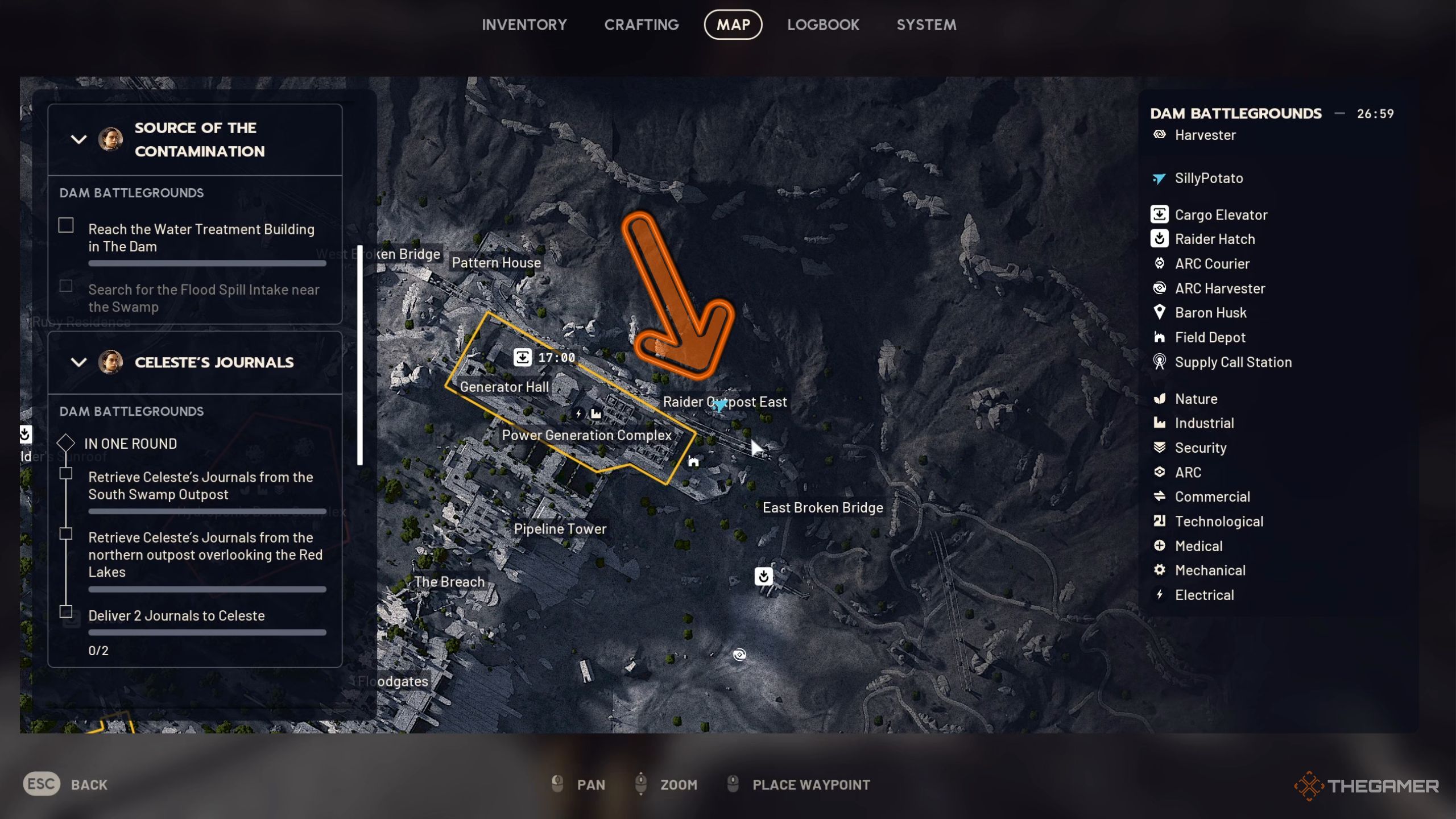 Квест ‘Журнал Селесты’ отправляет вас на северный форпост, чтобы найти один из её журналов. Этот форпост обозначен как ‘Raider Outpost East’ на карте. Найдите его в самой верхней части карты, прямо над Power Generation Complex, когда вы максимально увеличите масштаб. По прибытии, журнал должно быть легко найти.
