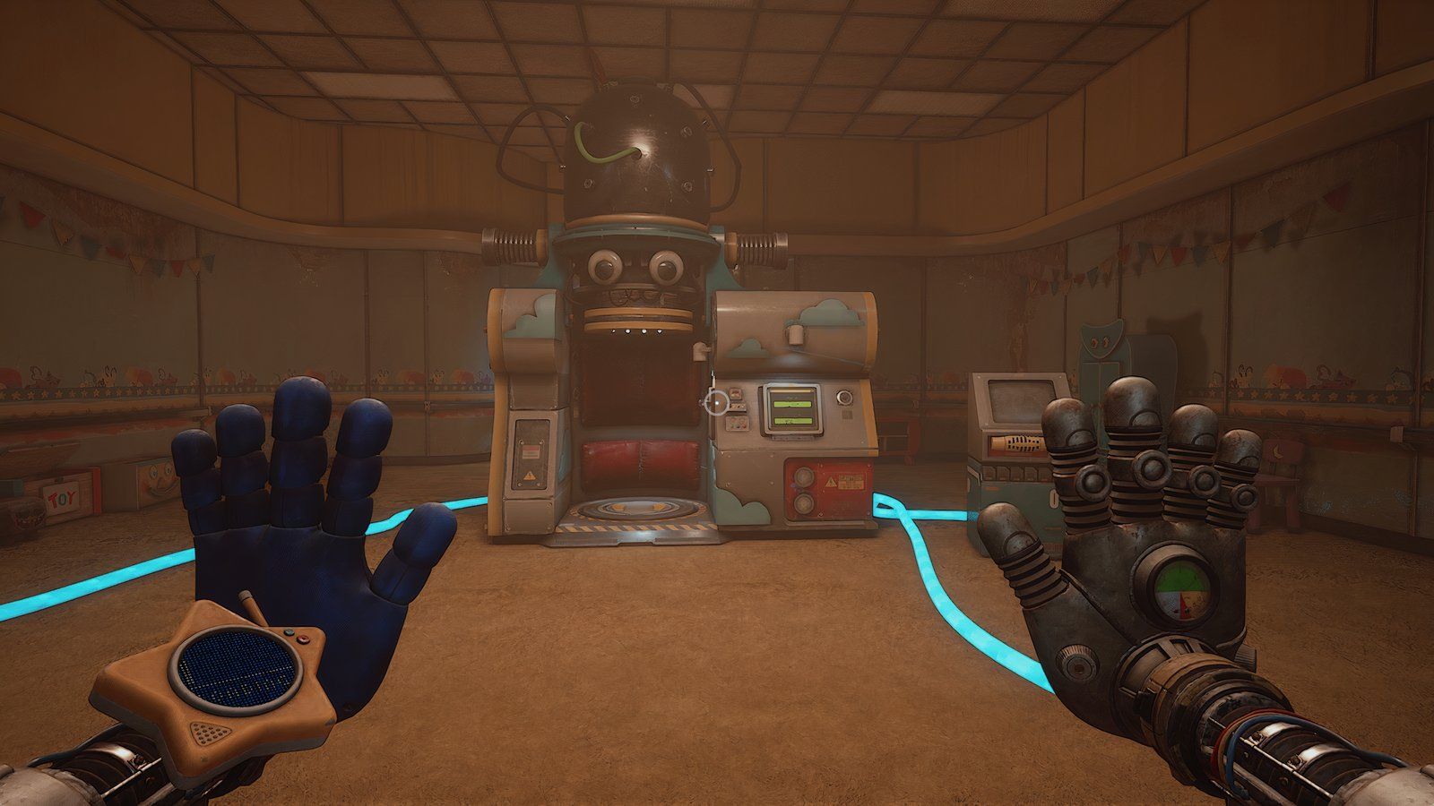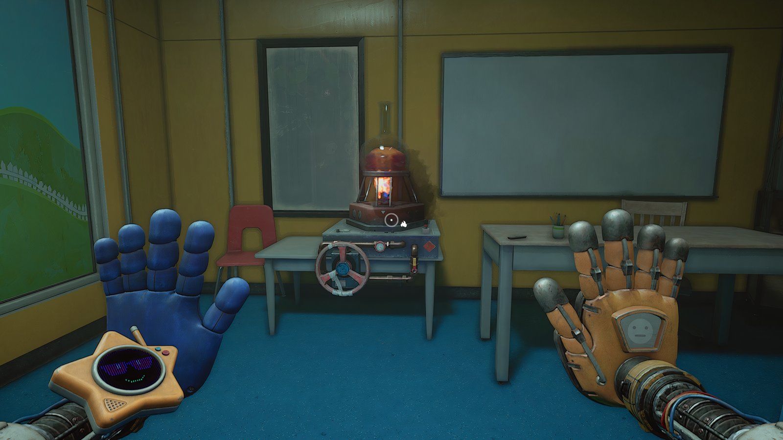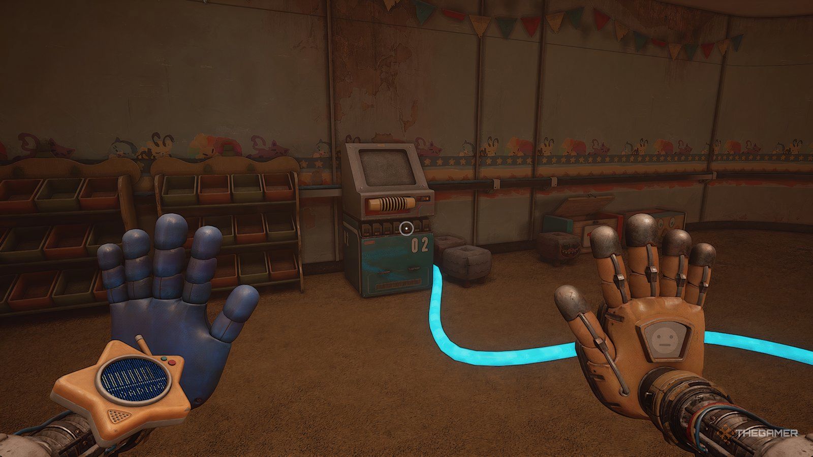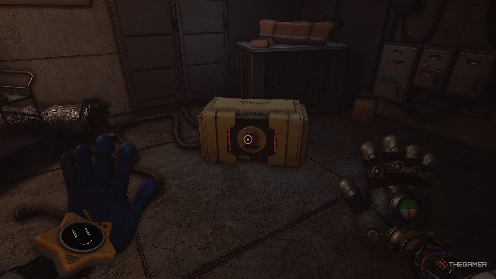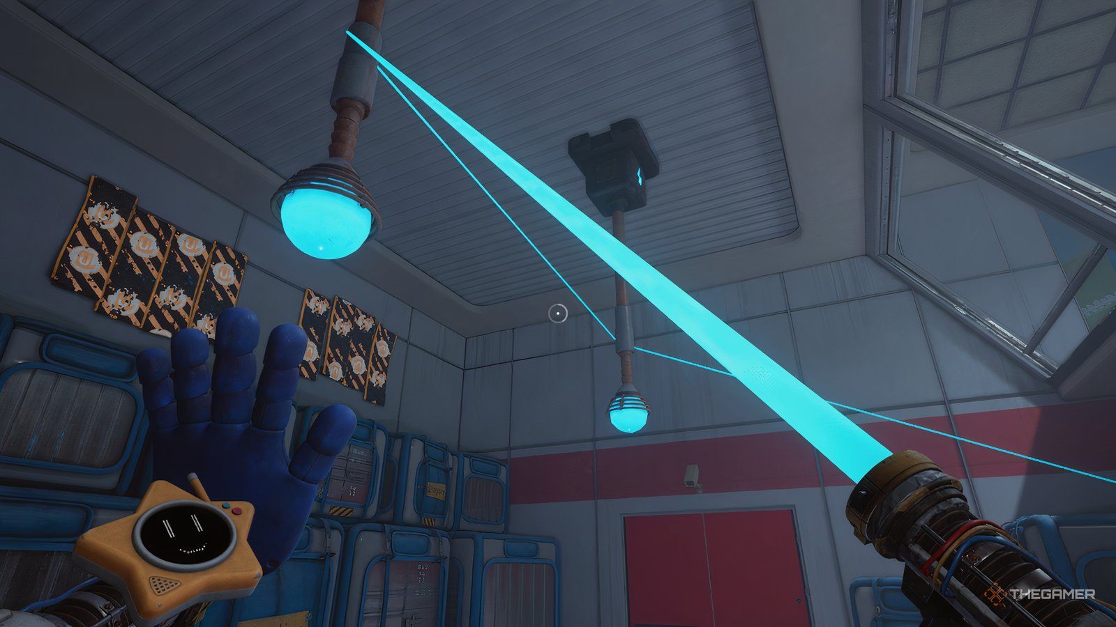 При установленных обеих батареях используйте свою синюю руку, чтобы повернуть ручку, расположенную между ними. Это заставит вашу синюю руку светиться. Теперь используйте свою светящуюся руку, чтобы активировать другую ручку в комнате – удар по ней рукой вызовет её перегрузку.